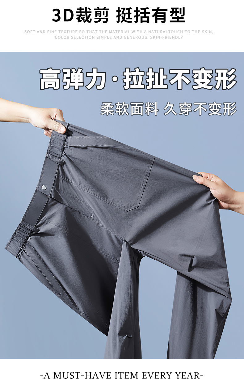 【冰丝】【DDP】大依优型大码休闲裤宽松半松紧腰凉感休闲裤夏季男士加肥大码薄款西裤