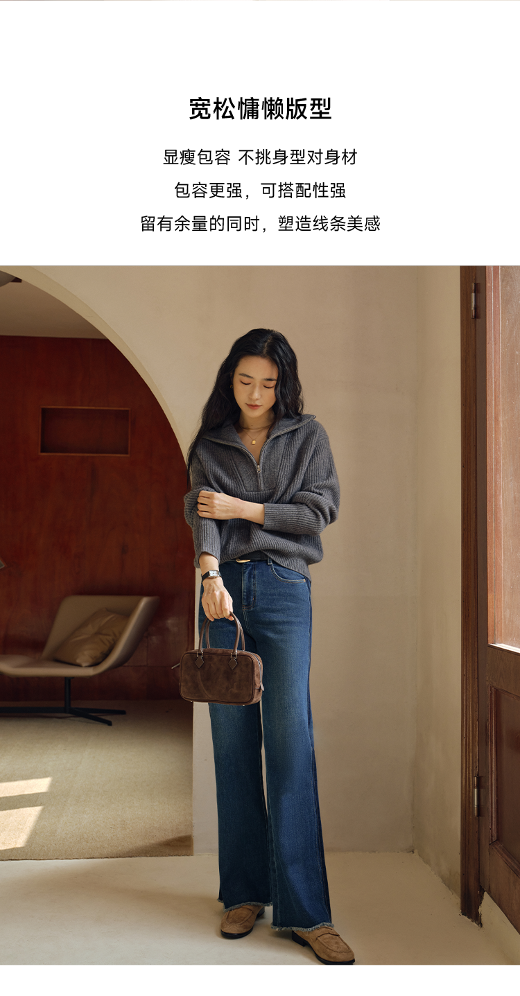 时髦两穿翻边直筒牛仔裤FCF3JEN089