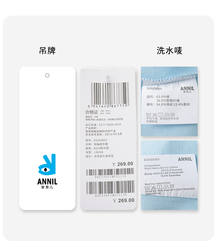 【凉感】女童SORONA凉感短袖连衣裙夏季新款安奈儿童装EG523053