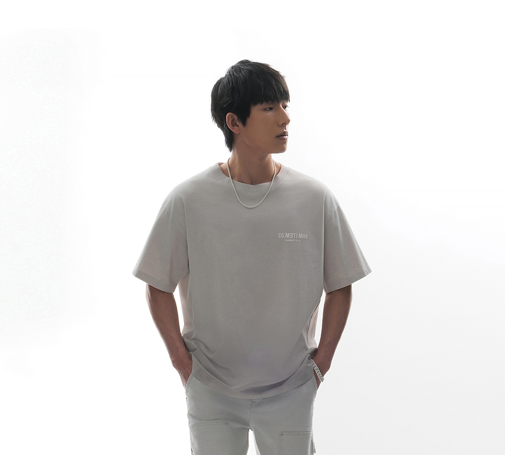 HIM漢崇 纯色短袖T恤男棉混纺个性压花简约高级圆领t恤 2026夏季