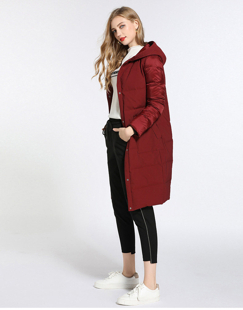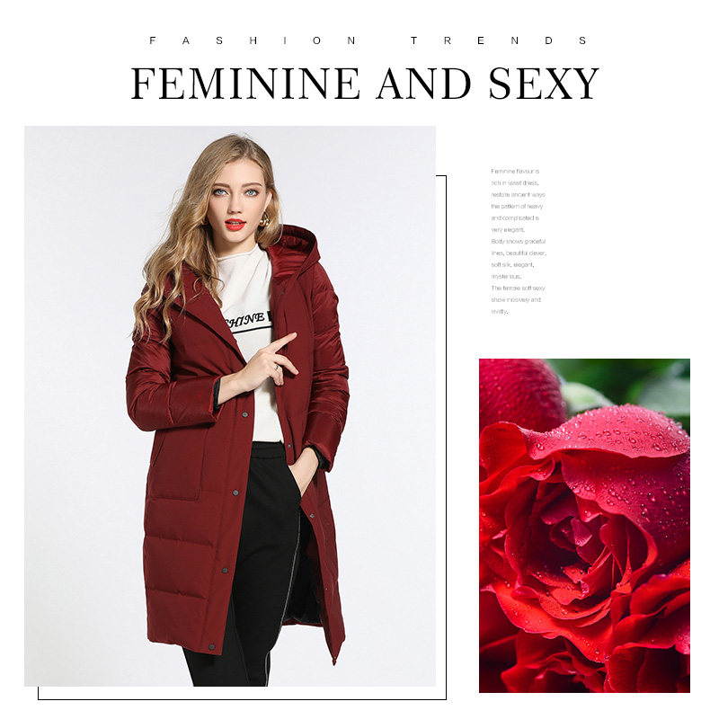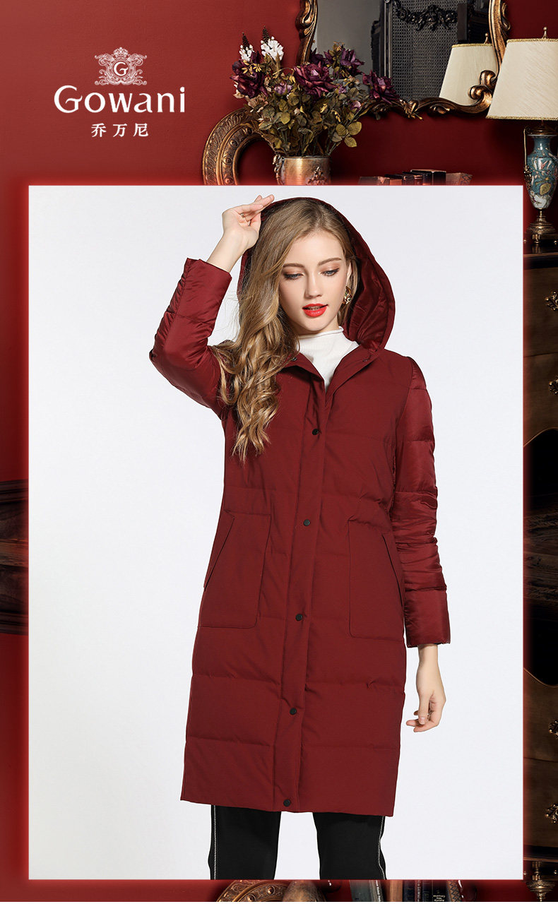 乔万尼冬季白鸭绒修身直筒时尚羽绒服女过膝长款薄EB4T079