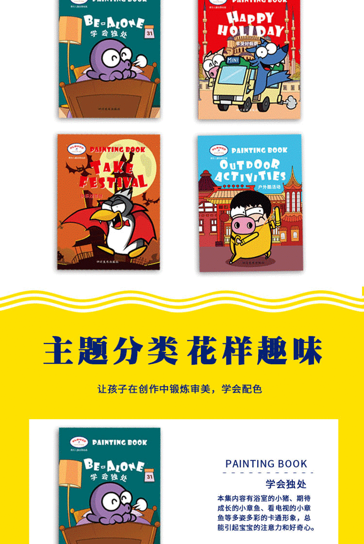 费乐儿童学生绘画涂色本幼儿画册绘画套装四本装