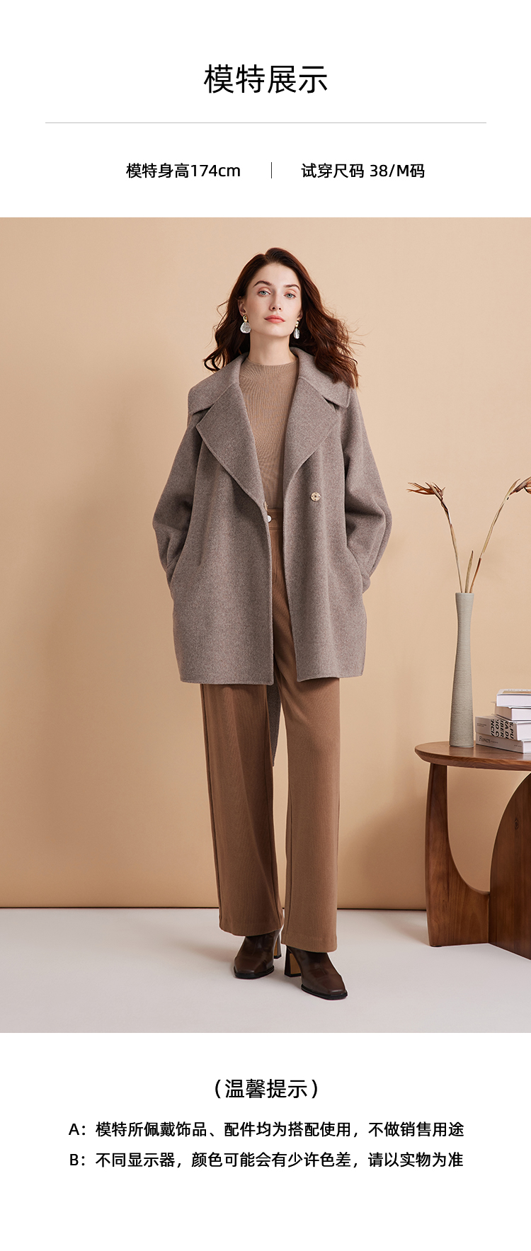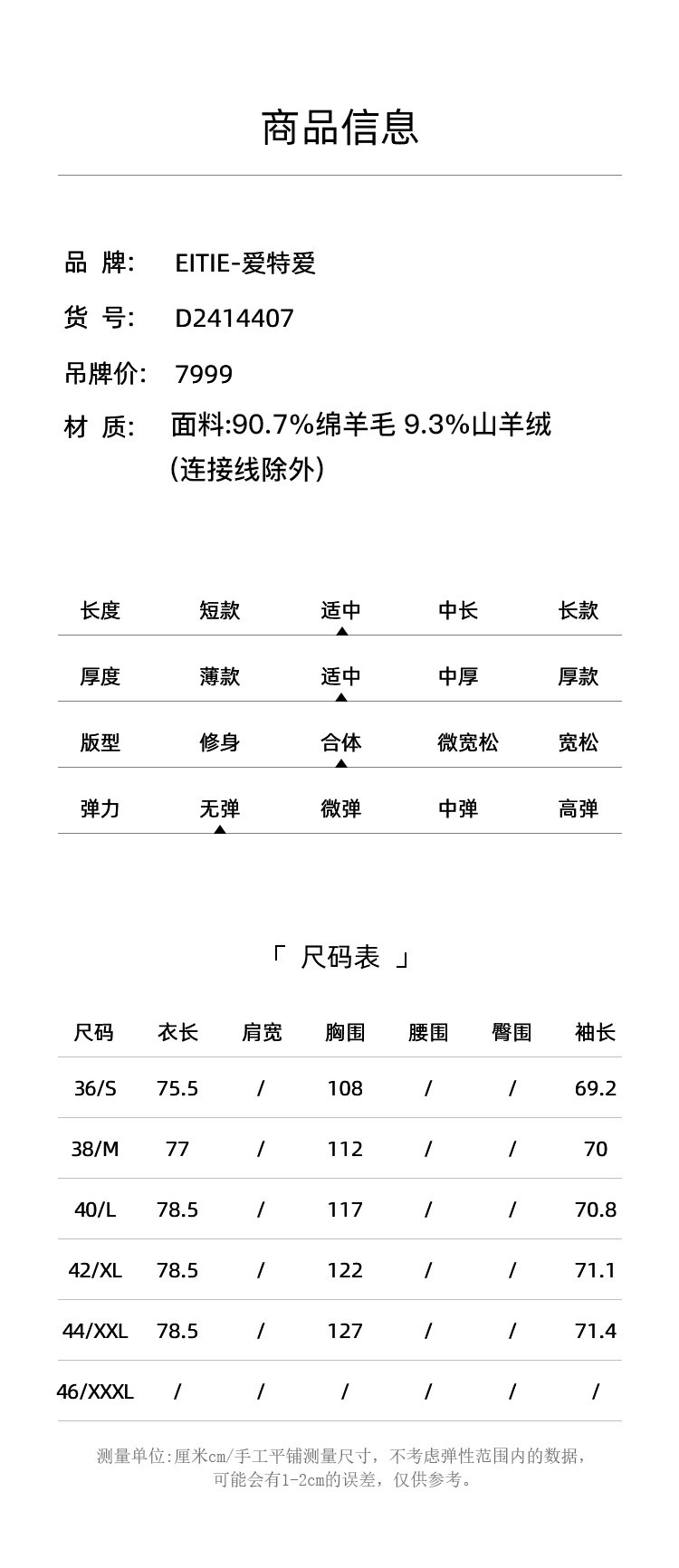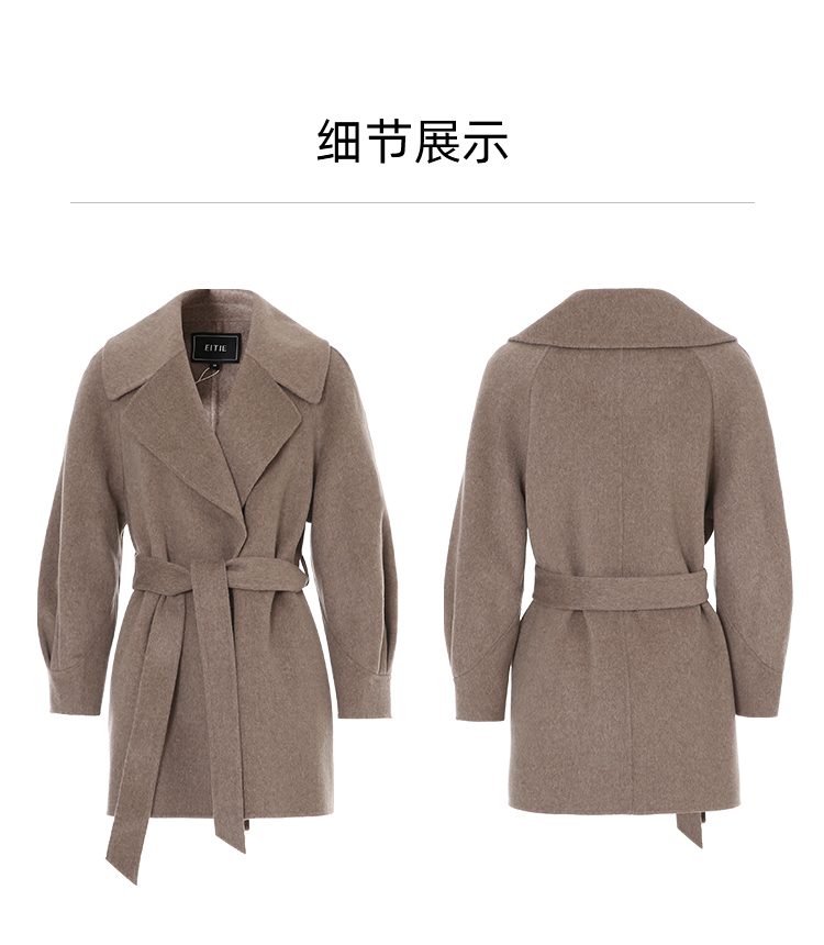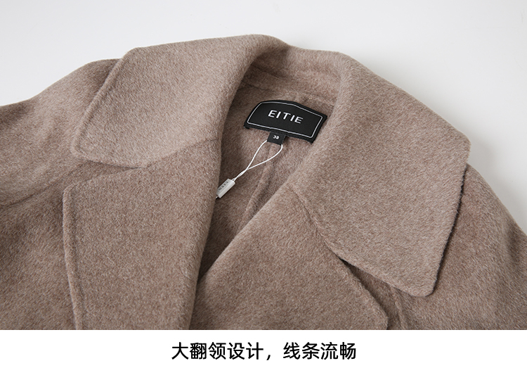 EITIE爱特爱冬新款气质翻领收腰显瘦高级感羊毛毛呢大衣外套D2414407