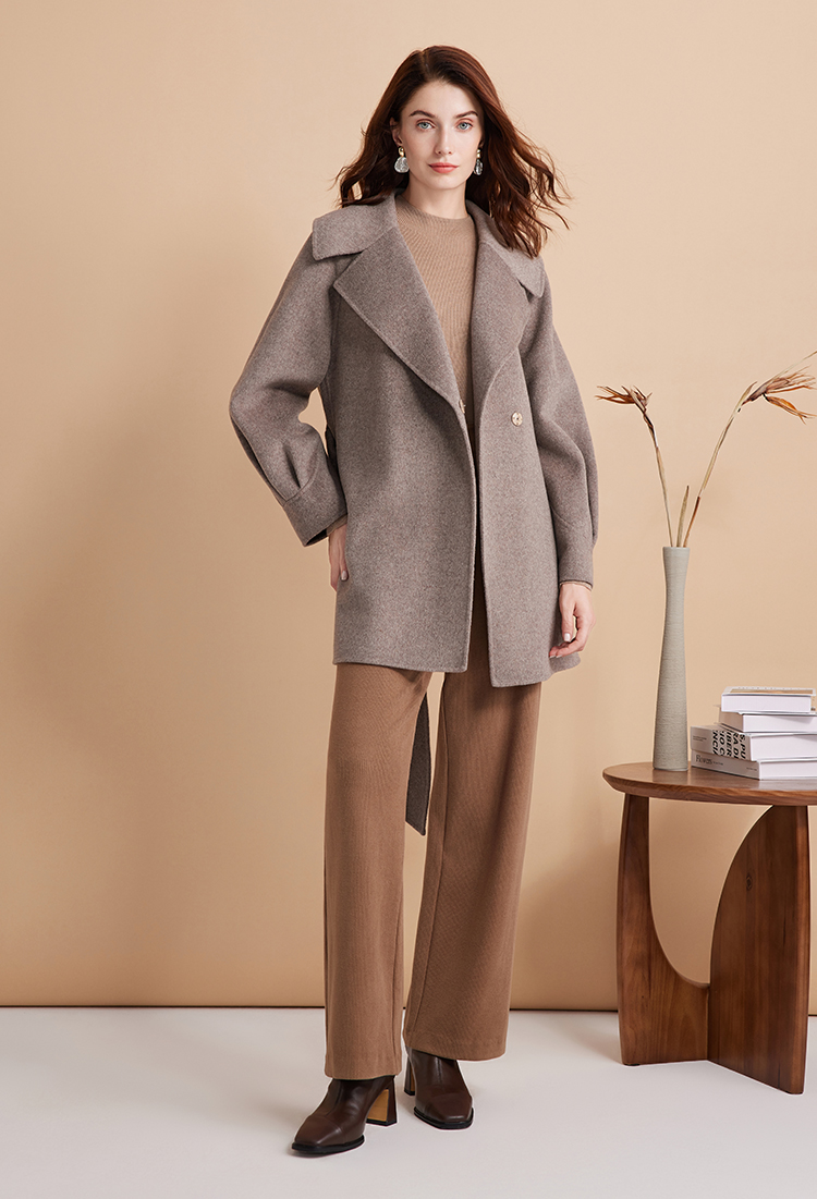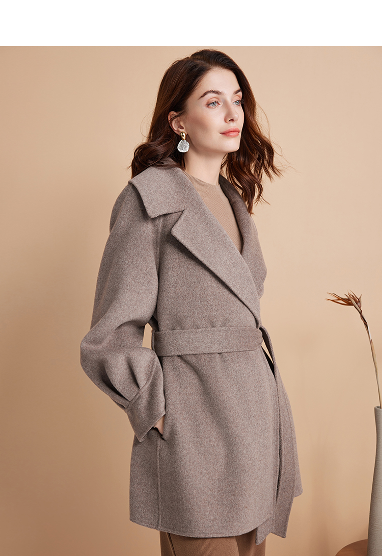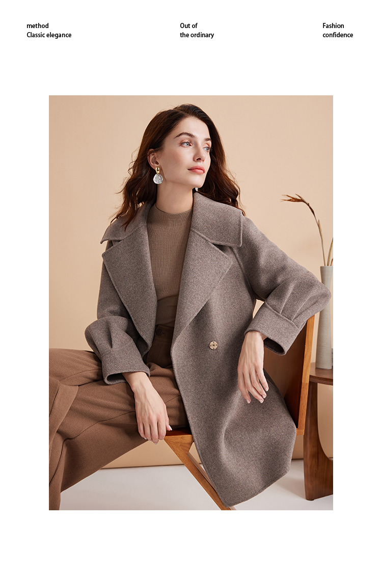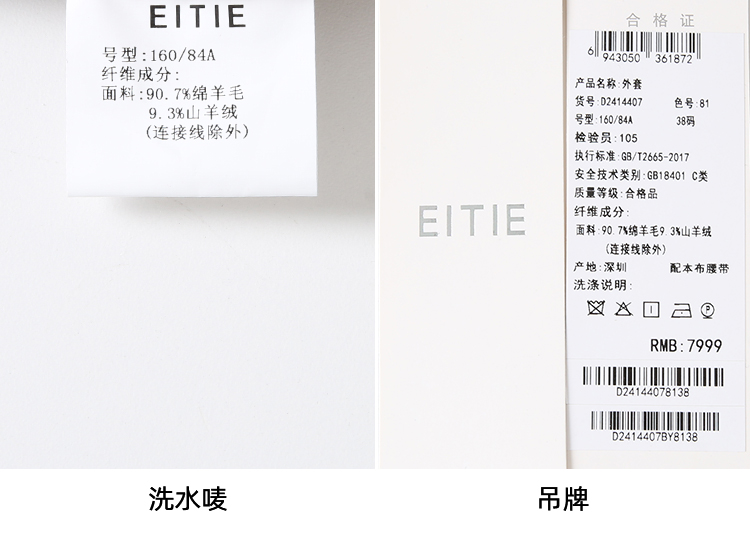EITIE爱特爱冬新款气质翻领收腰显瘦高级感羊毛毛呢大衣外套D2414407