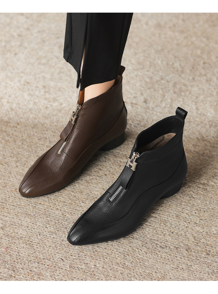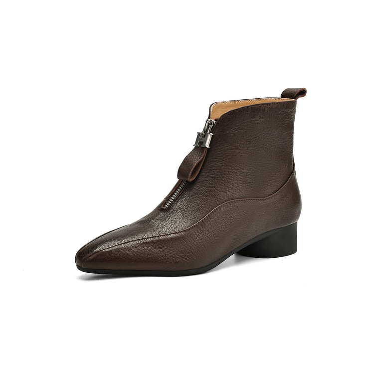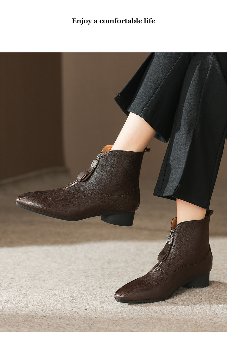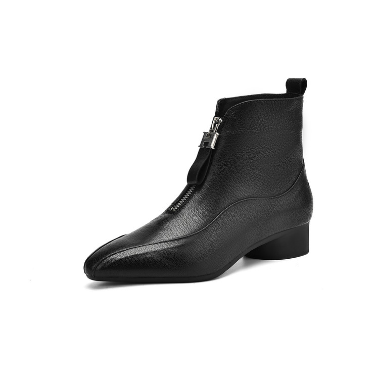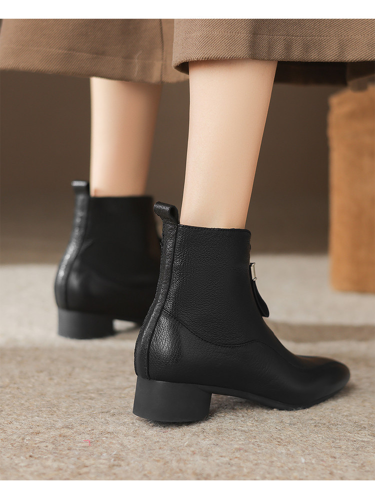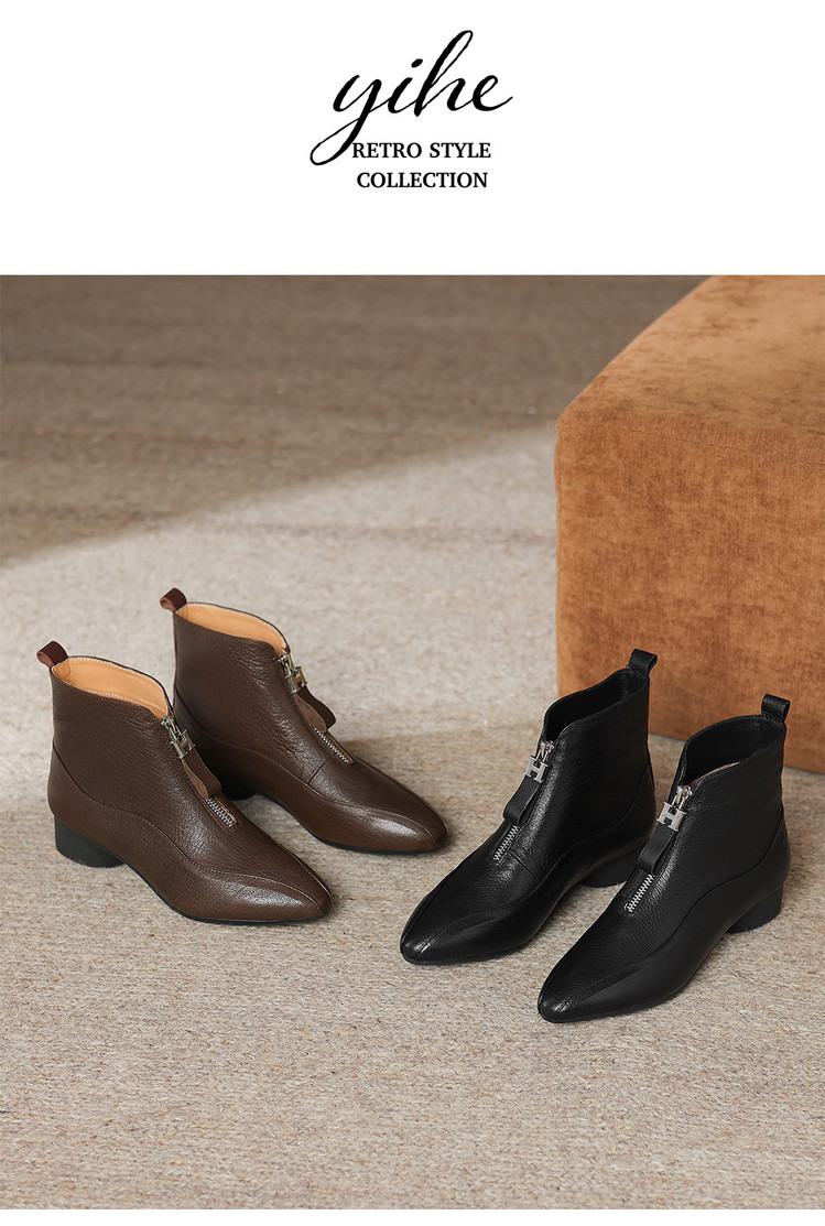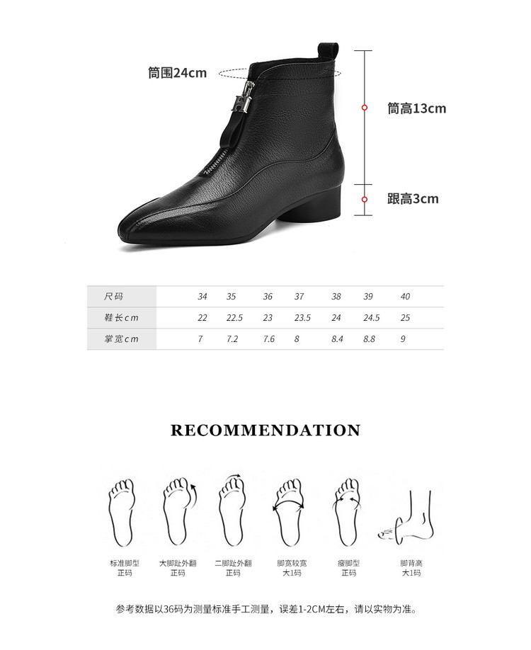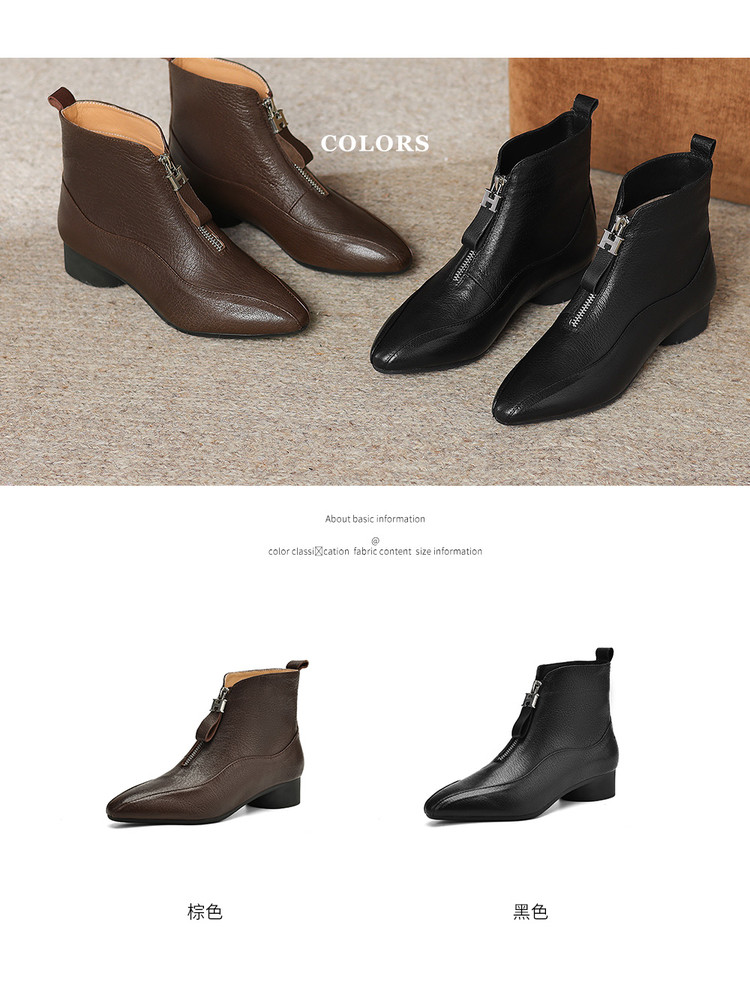 【预售5天】时尚粗跟软底舒适短靴女秋冬季新款百搭尖头加绒保暖马丁靴女DS&1603-5
