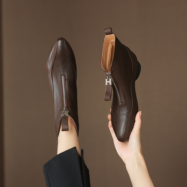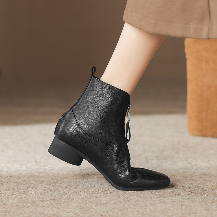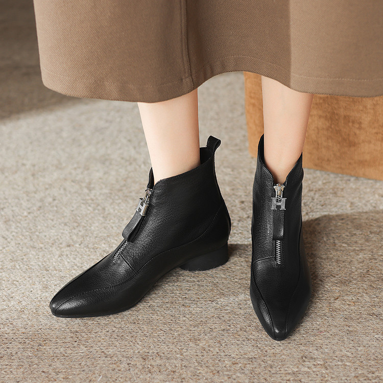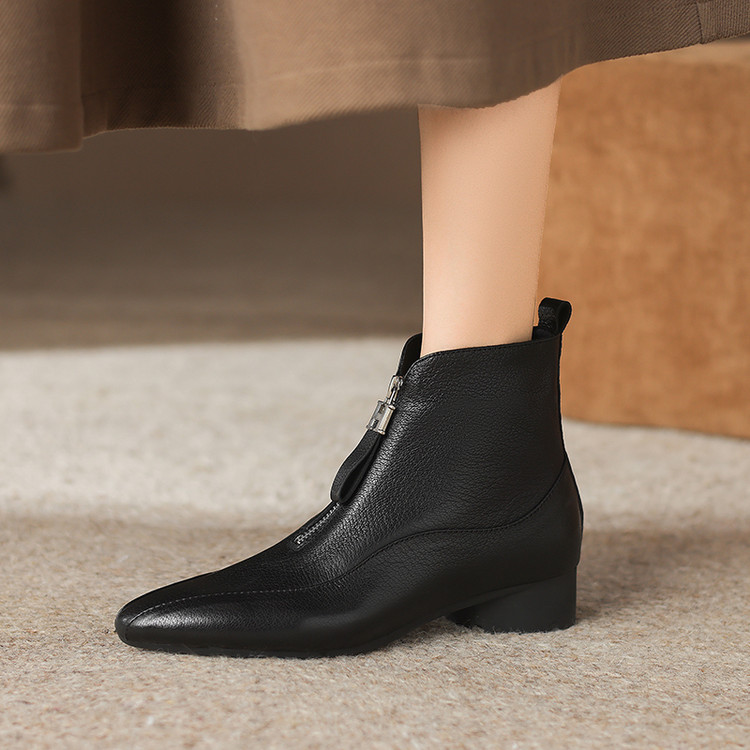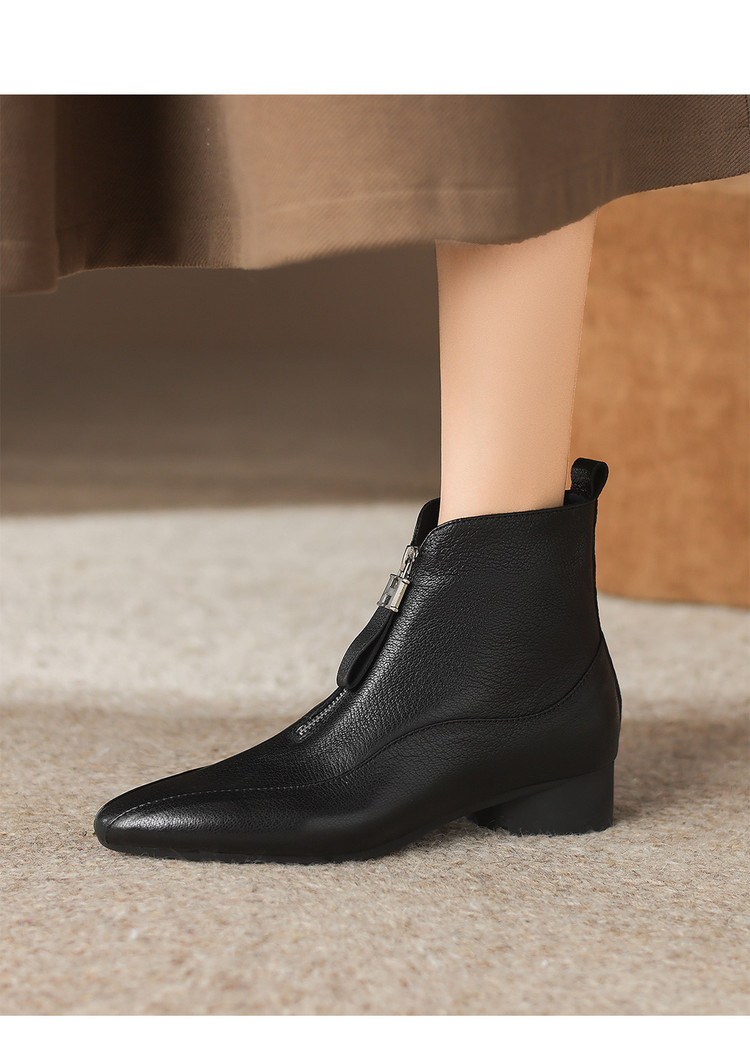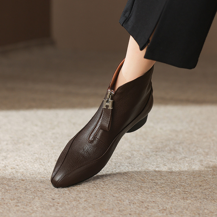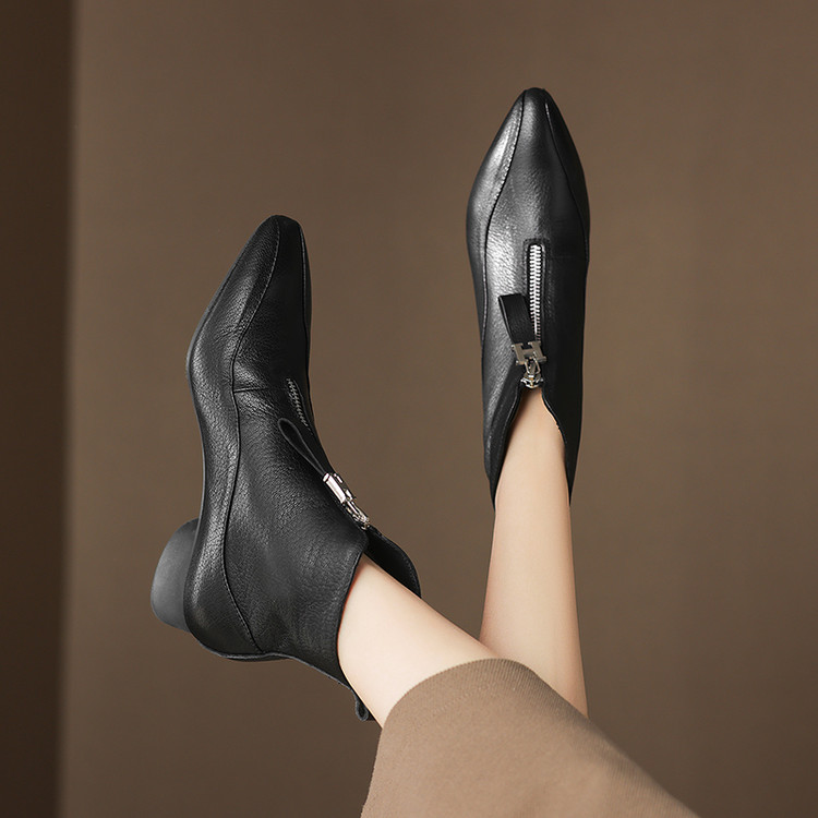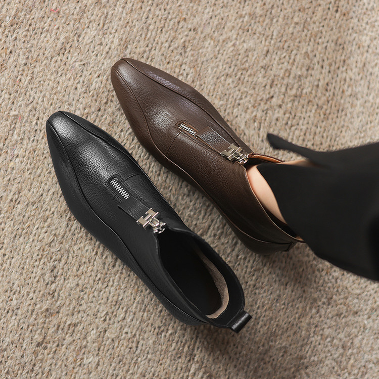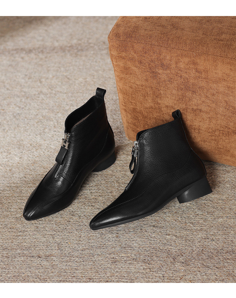 【预售5天】时尚粗跟软底舒适短靴女秋冬季新款百搭尖头加绒保暖马丁靴女DS&1603-5