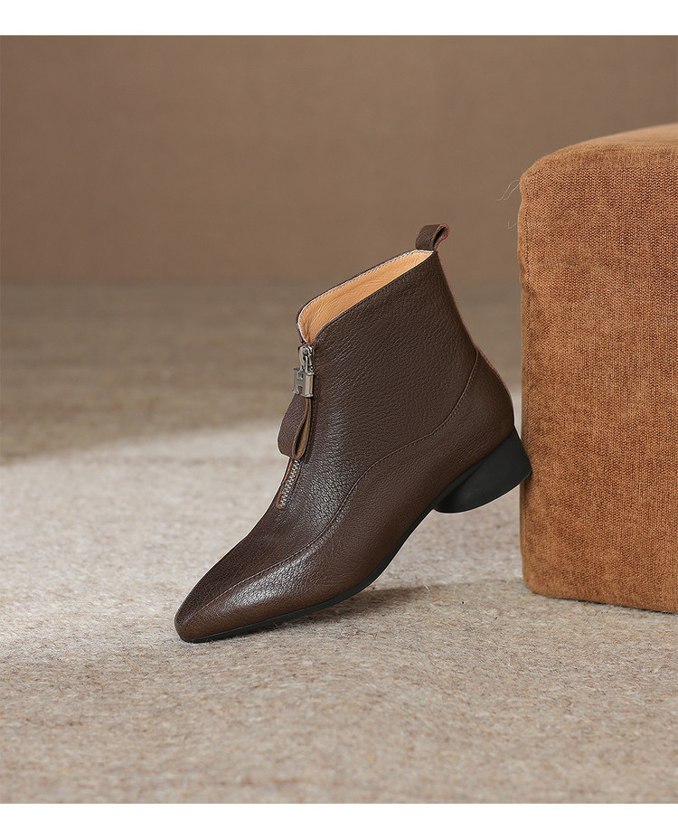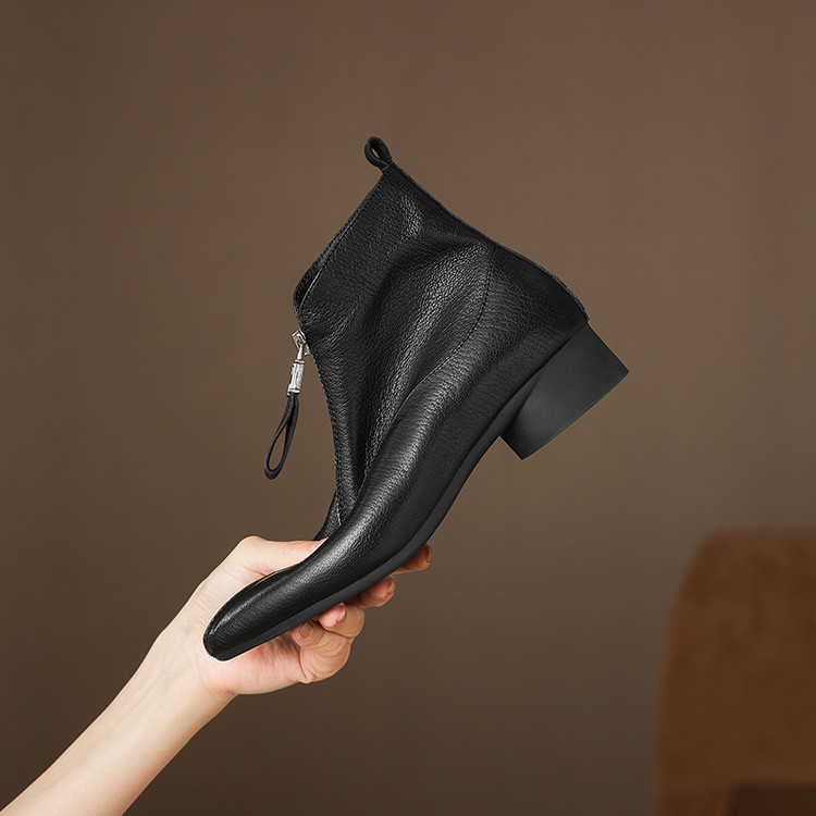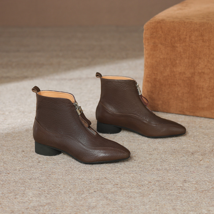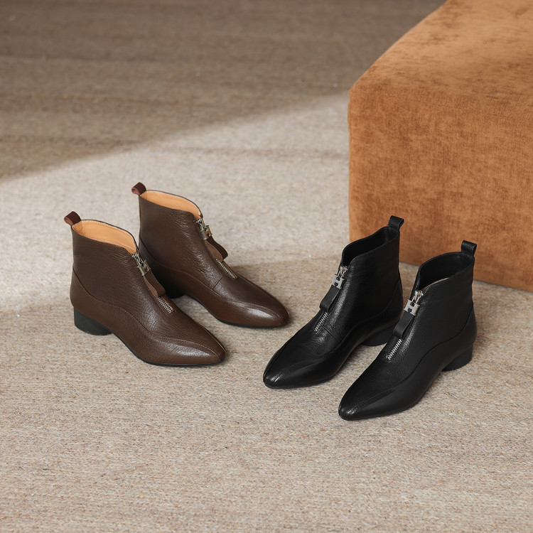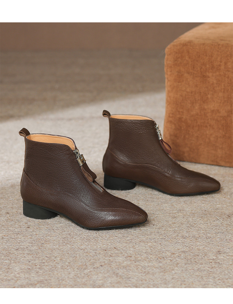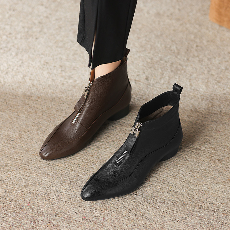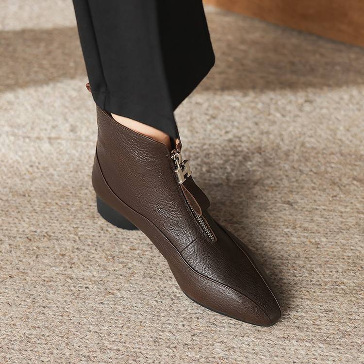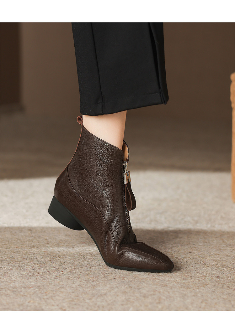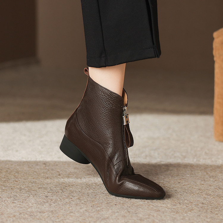 【预售5天】时尚粗跟软底舒适短靴女秋冬季新款百搭尖头加绒保暖马丁靴女DS&1603-5