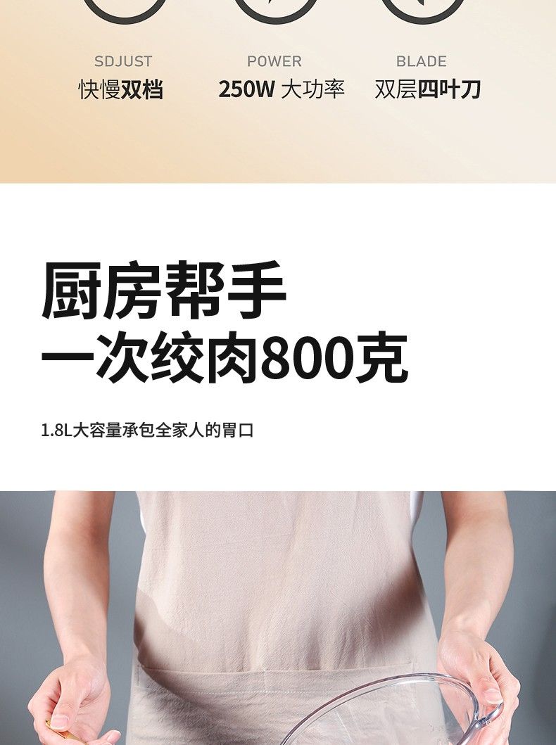 【1件包邮】美菱MM-LC1820绞肉机(玻璃碗)/240003 大容量厨房好帮手