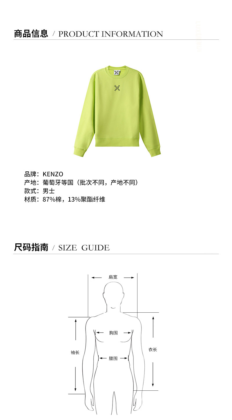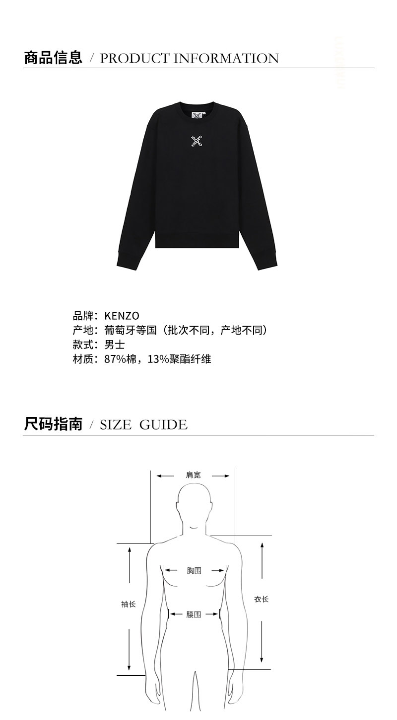 KENZO/高田贤三 男卫衣 男士SPORT系列棉质圆领长袖卫衣运动衫 5SW012 4MS