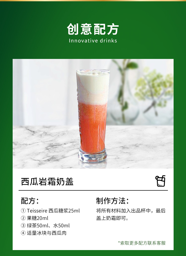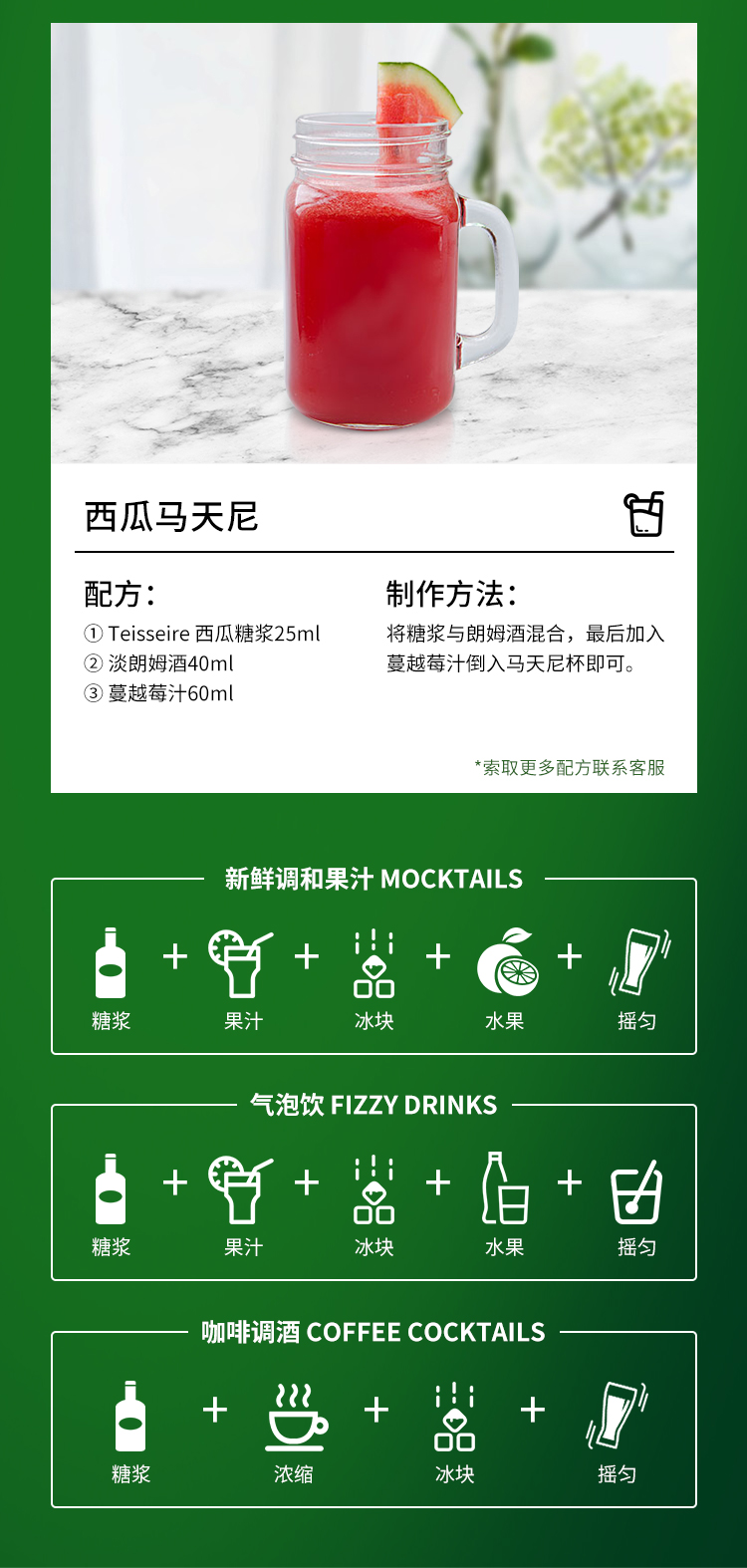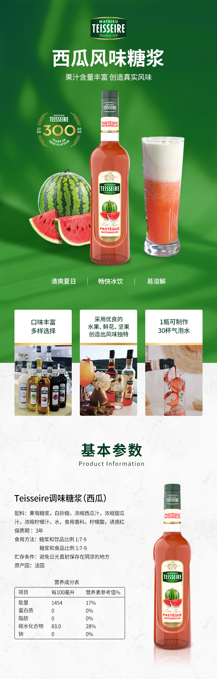 【Teisseire糖浆】帝斯乐 西瓜风味700ML/瓶 液体糖浆饮品伴侣 奶茶 调酒