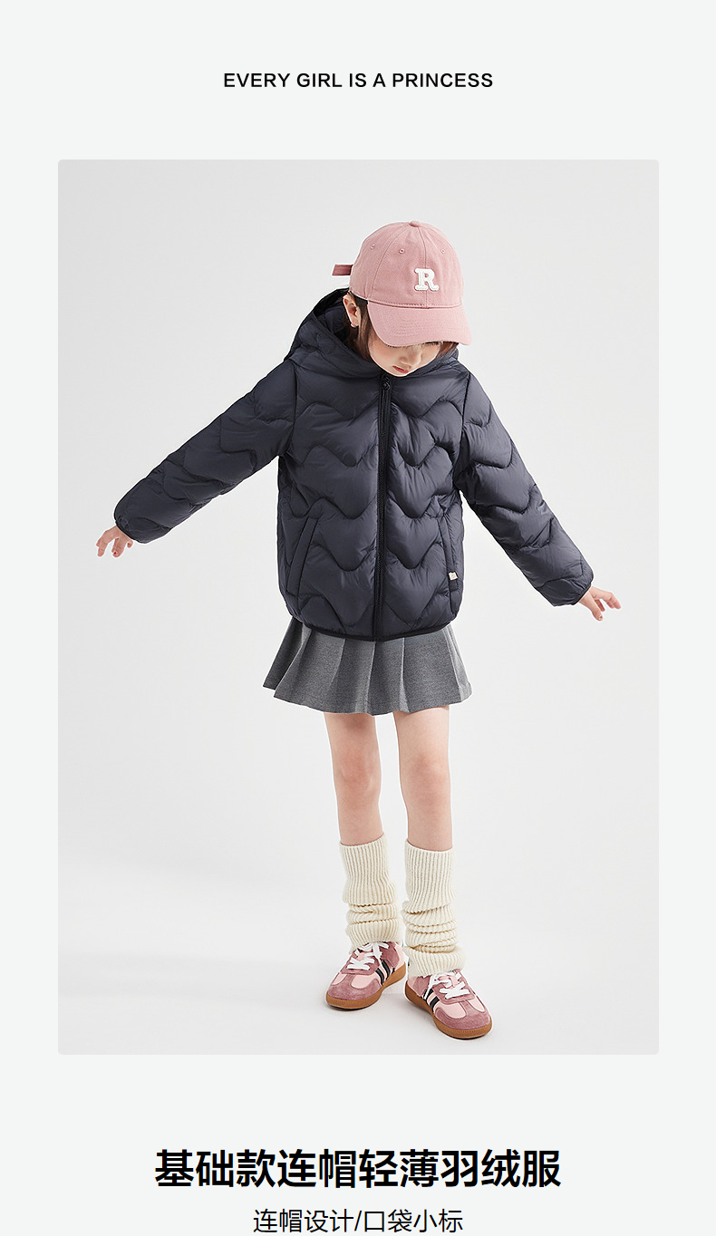 笛莎Deesha 童装女童羽绒服2025冬新款女童基础款连帽轻薄羽绒服