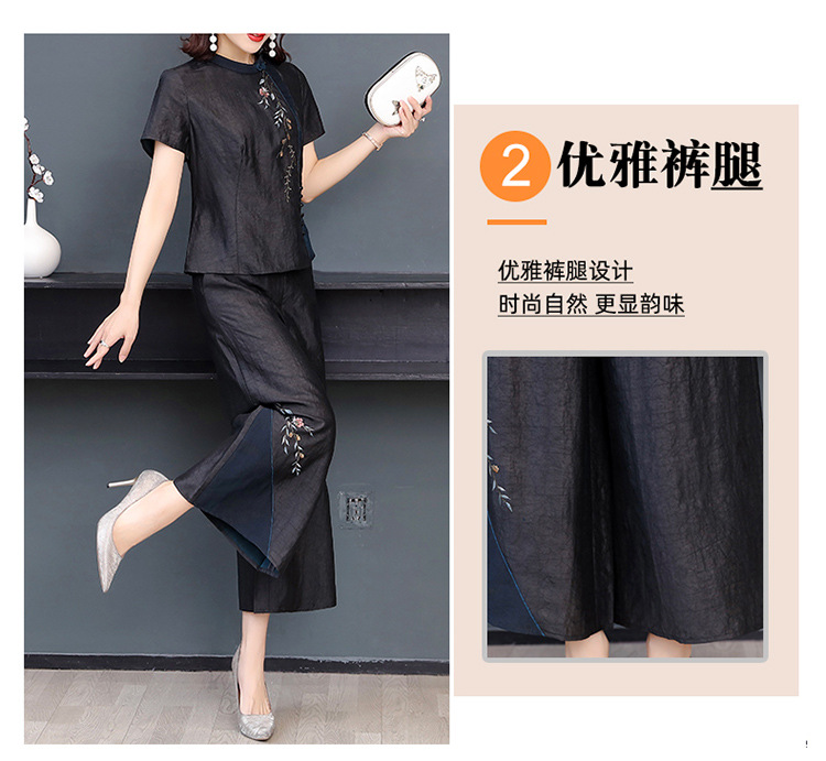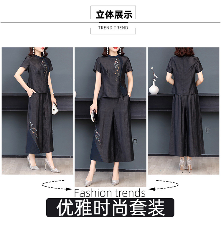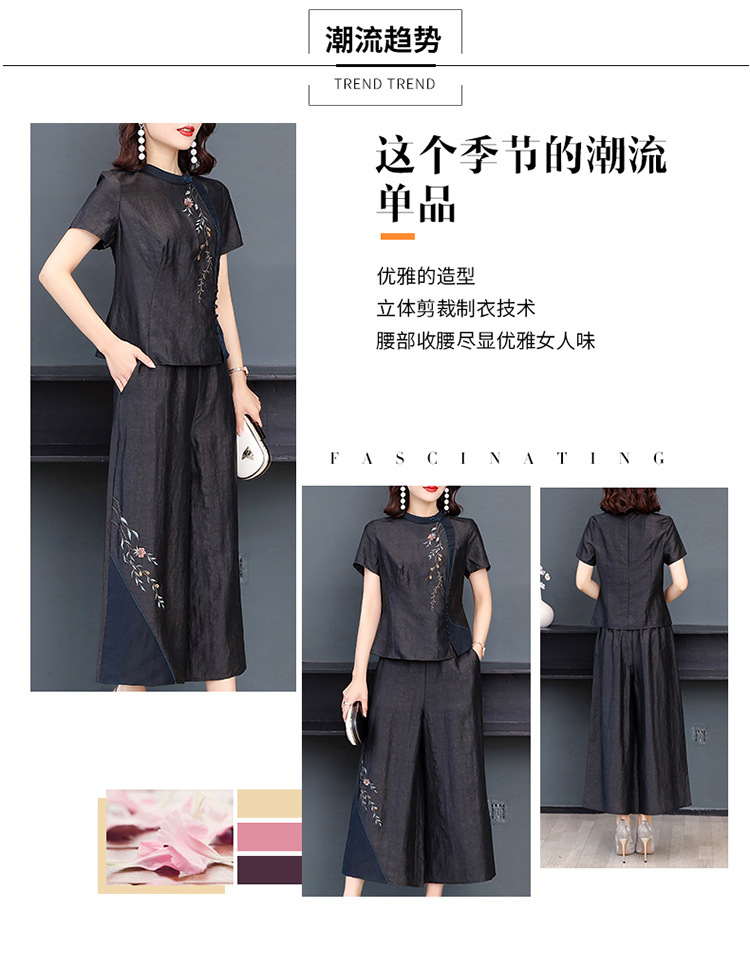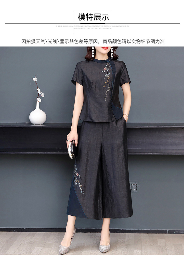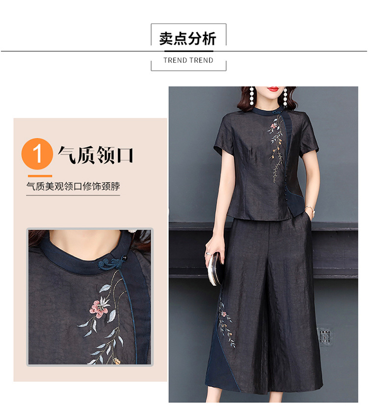 新款气质复古绣花上衣阔腿裤妈妈装大码两件套AHM-qyy9607