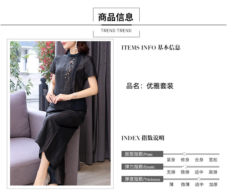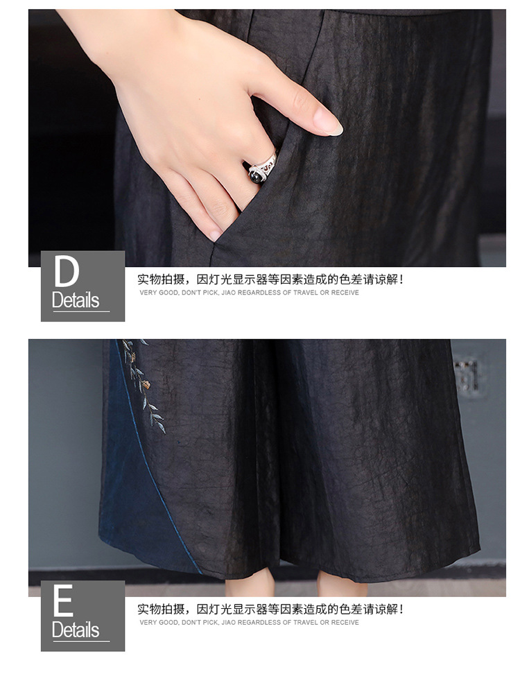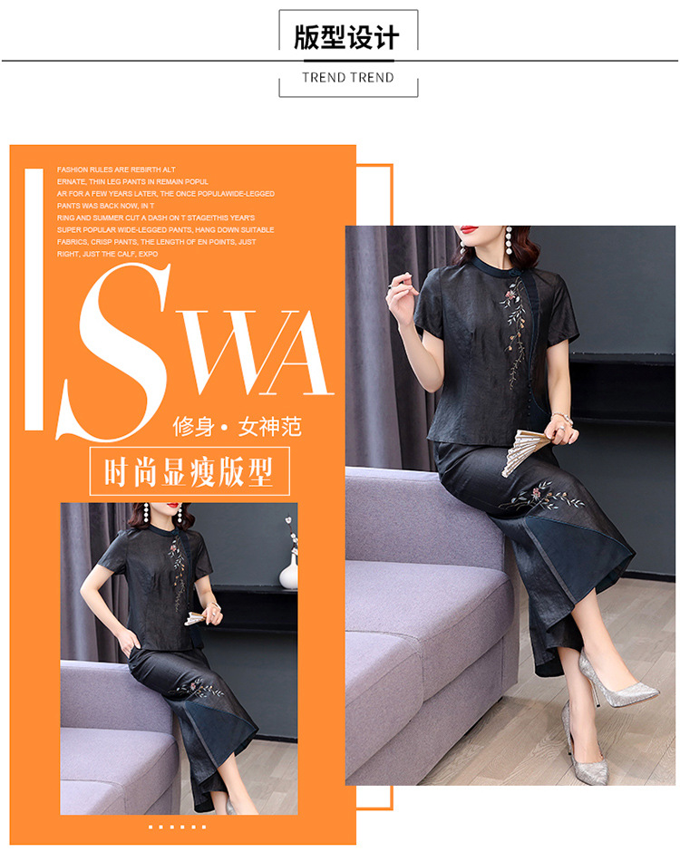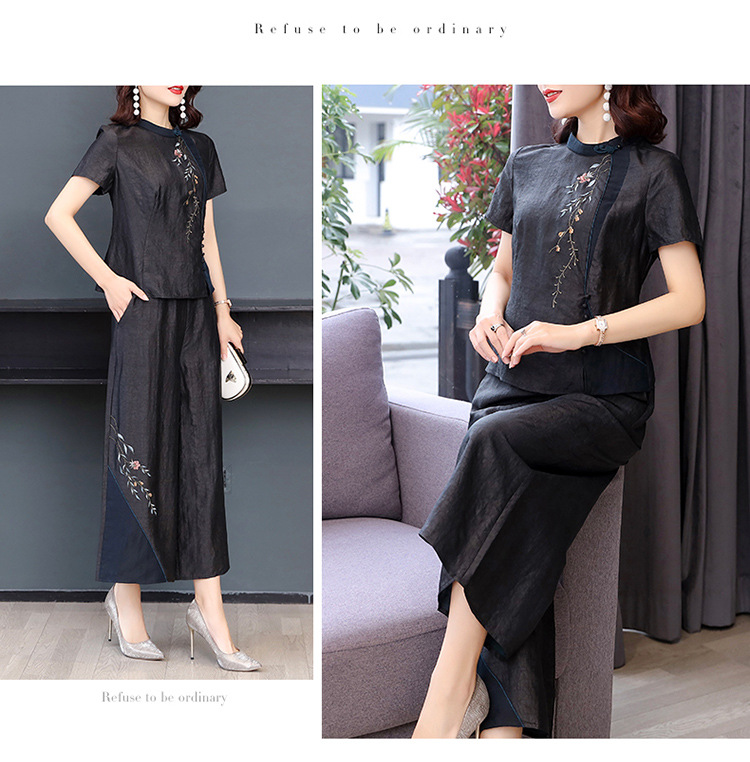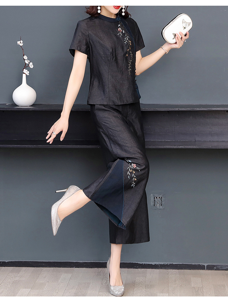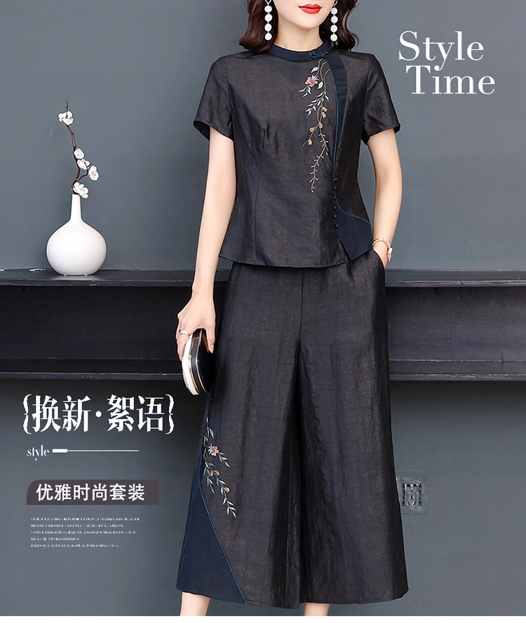 新款气质复古绣花上衣阔腿裤妈妈装大码两件套AHM-qyy9607