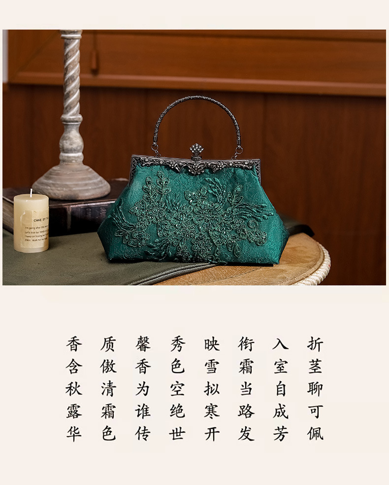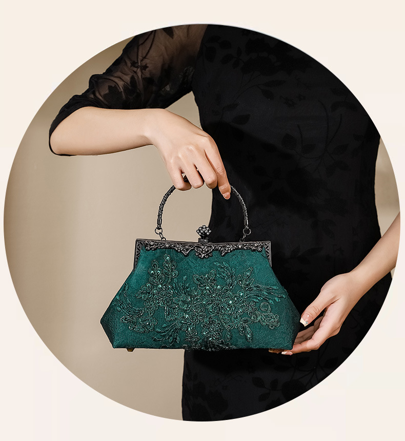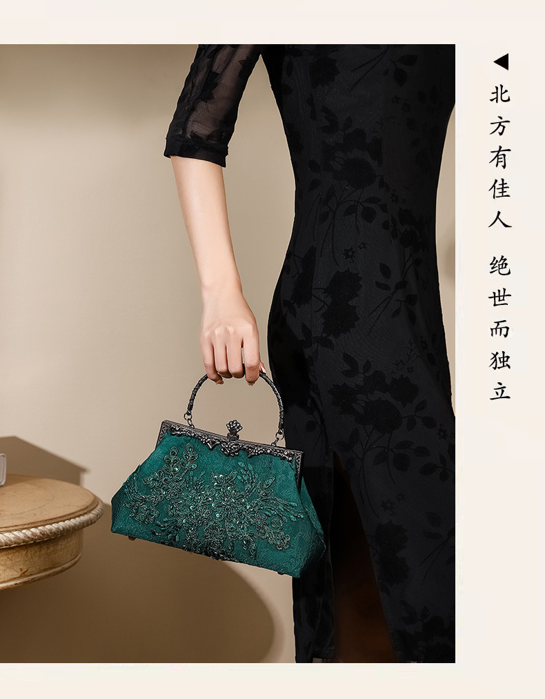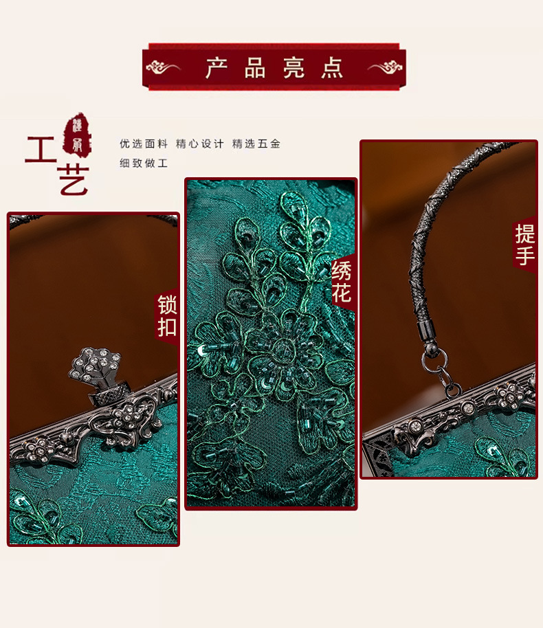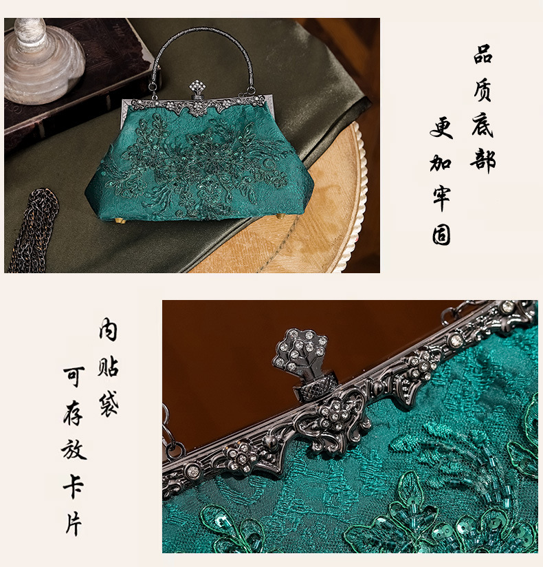 绿野仙踪祖母绿珍珠绣花手提包,古风旗袍宴会手提包QB-绿野仙踪
