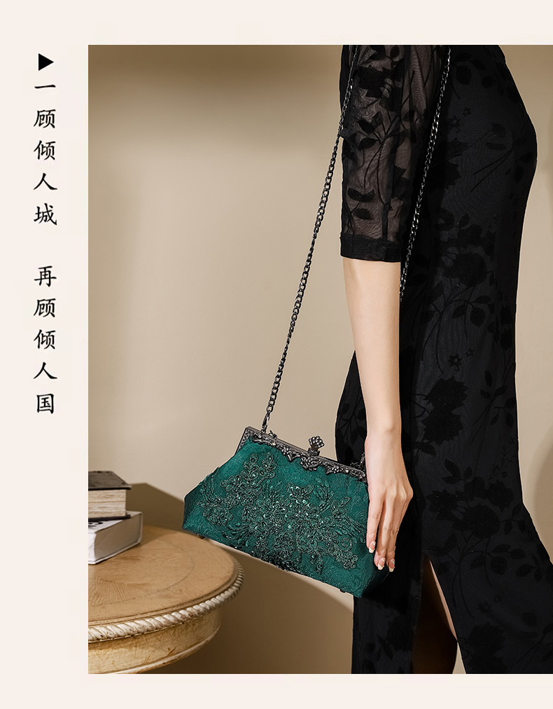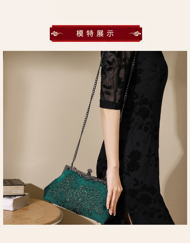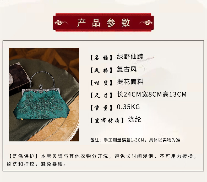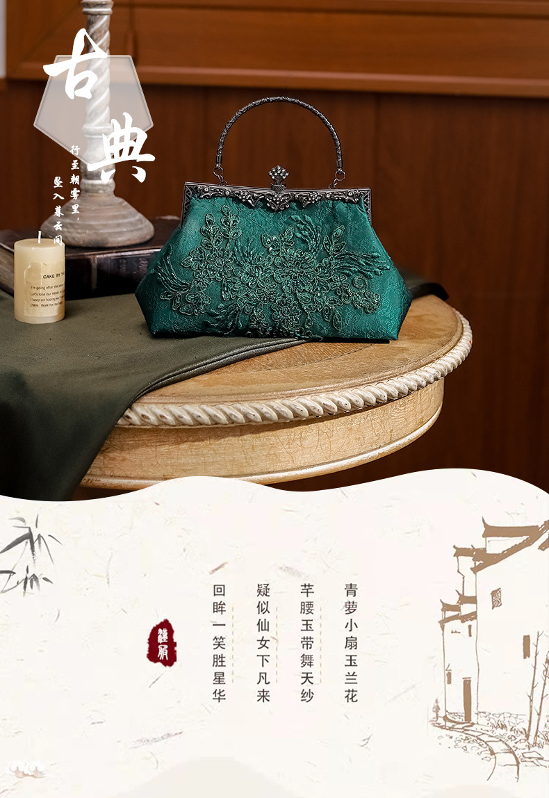 绿野仙踪祖母绿珍珠绣花手提包,古风旗袍宴会手提包QB-绿野仙踪