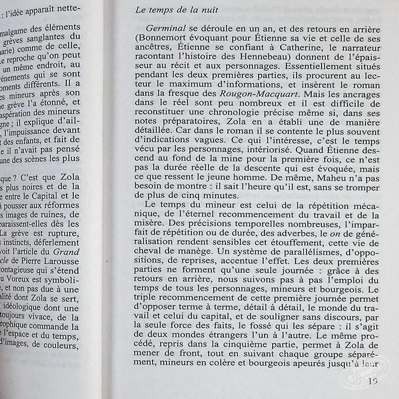 1885. Disparition de Hugo. Apparition de Germinal. Voici, dans la France moderne et industrielle, les " Misérables " de Zola. Ce roman des mineurs, c'est aussi l'Enfer, dans un monde dantesque, où l'on " voyage au bout de la nuit ". Mais à la fin du prodigieux itinéraire au centre de la terre, du fond du souterrain où il a vécu si longtemps écrasé, l'homme enfin se redresse et surgit dans une révolte pleine d'espoirs.