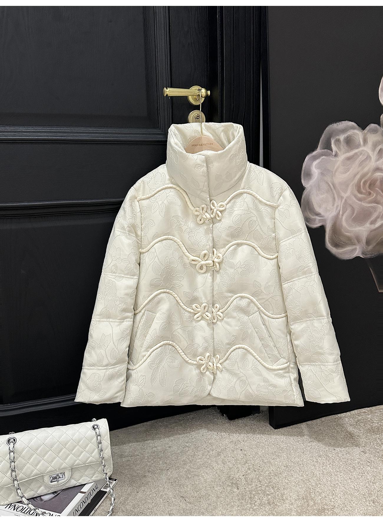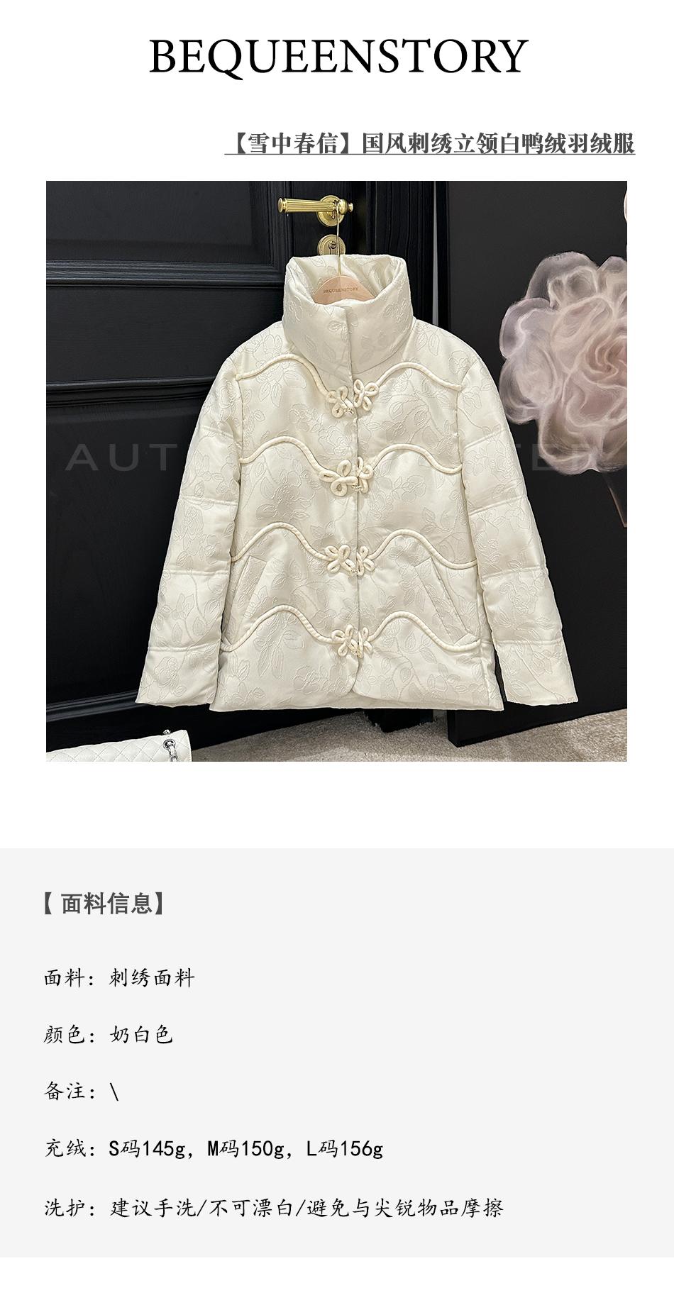 【七夕福利,不退不换】【雪中春信】国风刺绣手工盘扣保暖立领白鸭绒外套女装