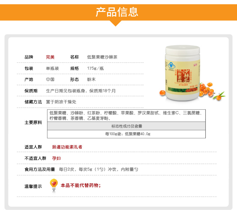 【预售 急单慎拍】完美牌低聚果糖沙棘茶优惠套装 175克/瓶 × 10瓶 原价2000元