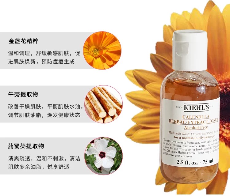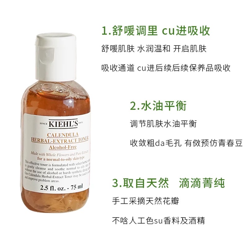 【专柜正品】2瓶保湿王!KIEHL'S科颜氏金盏花植物爽肤水75ml控油祛痘舒缓收缩毛孔