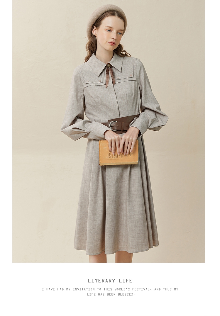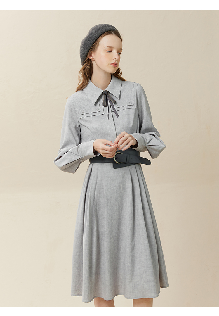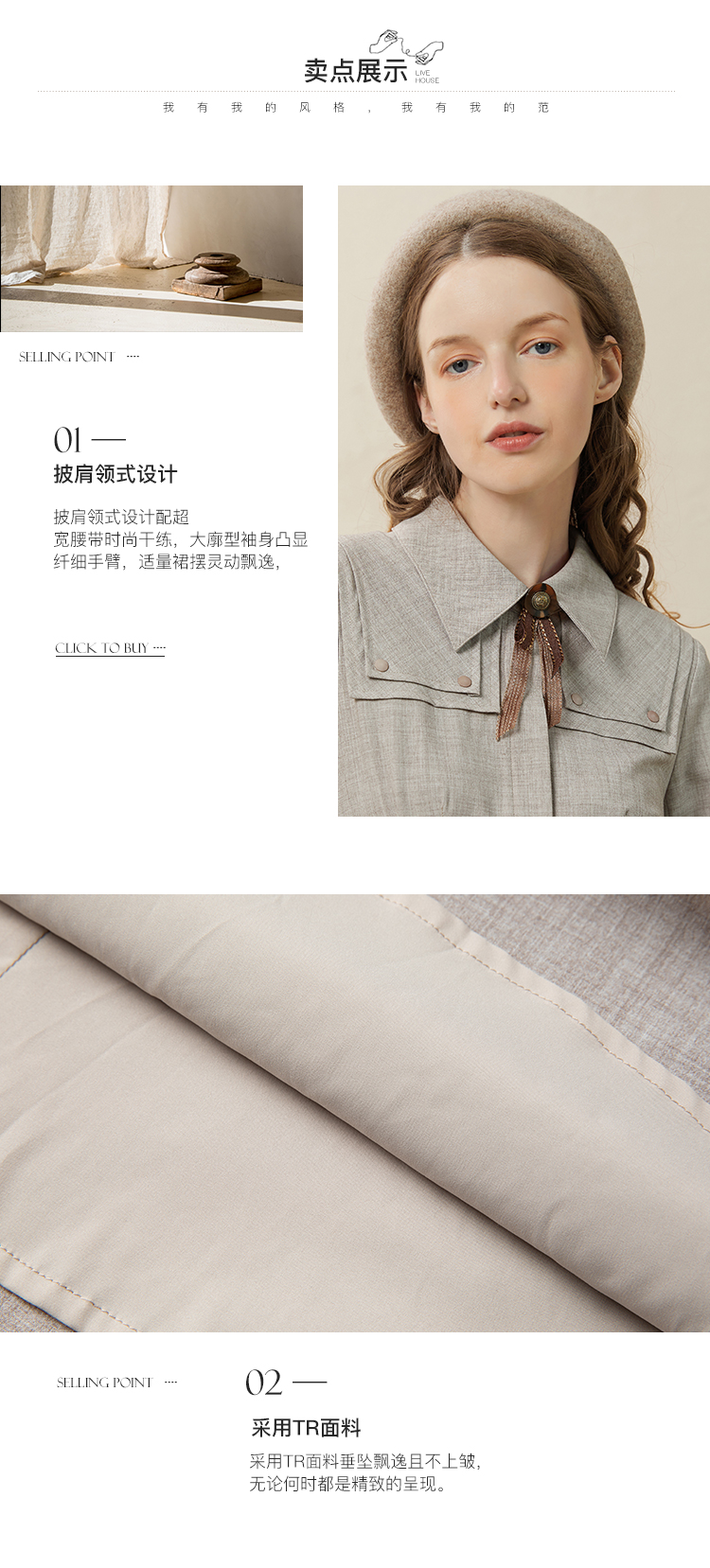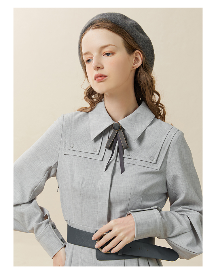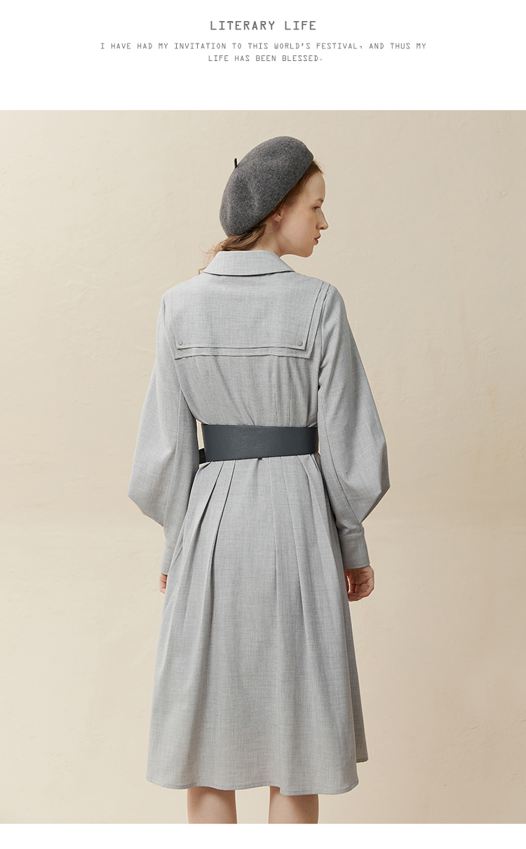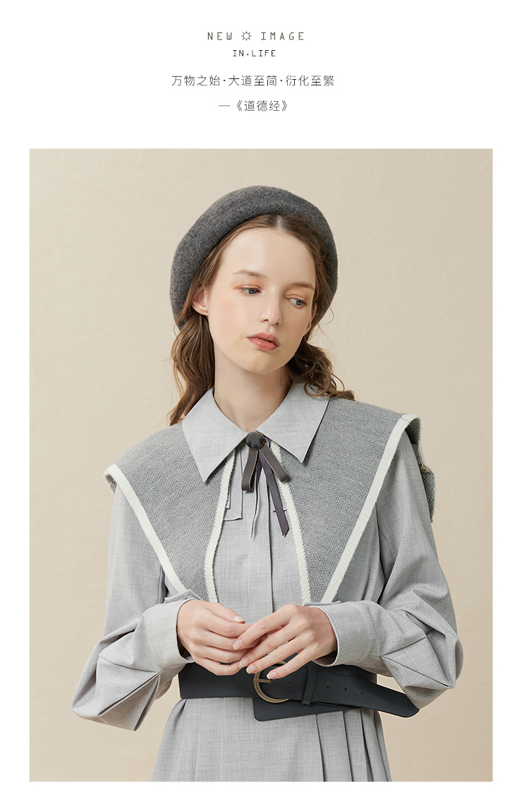 Famecoco范可儿磨毛衬衫裙女披肩领连衣裙腰带收腰显瘦F228FA010