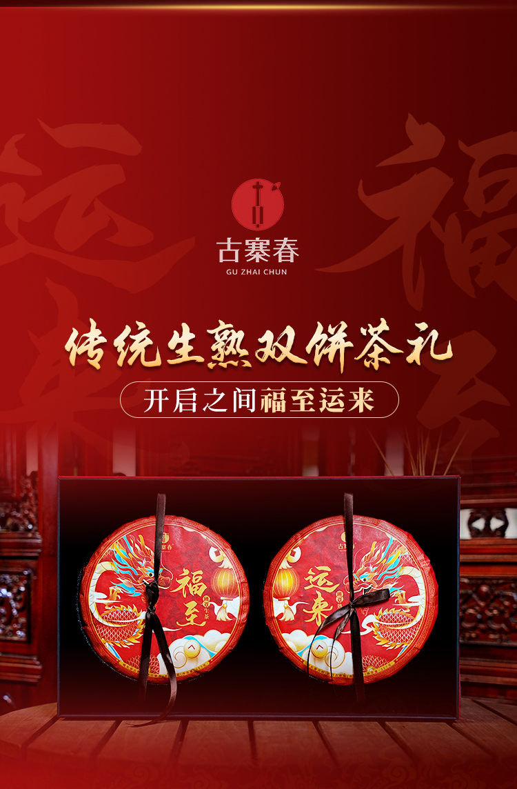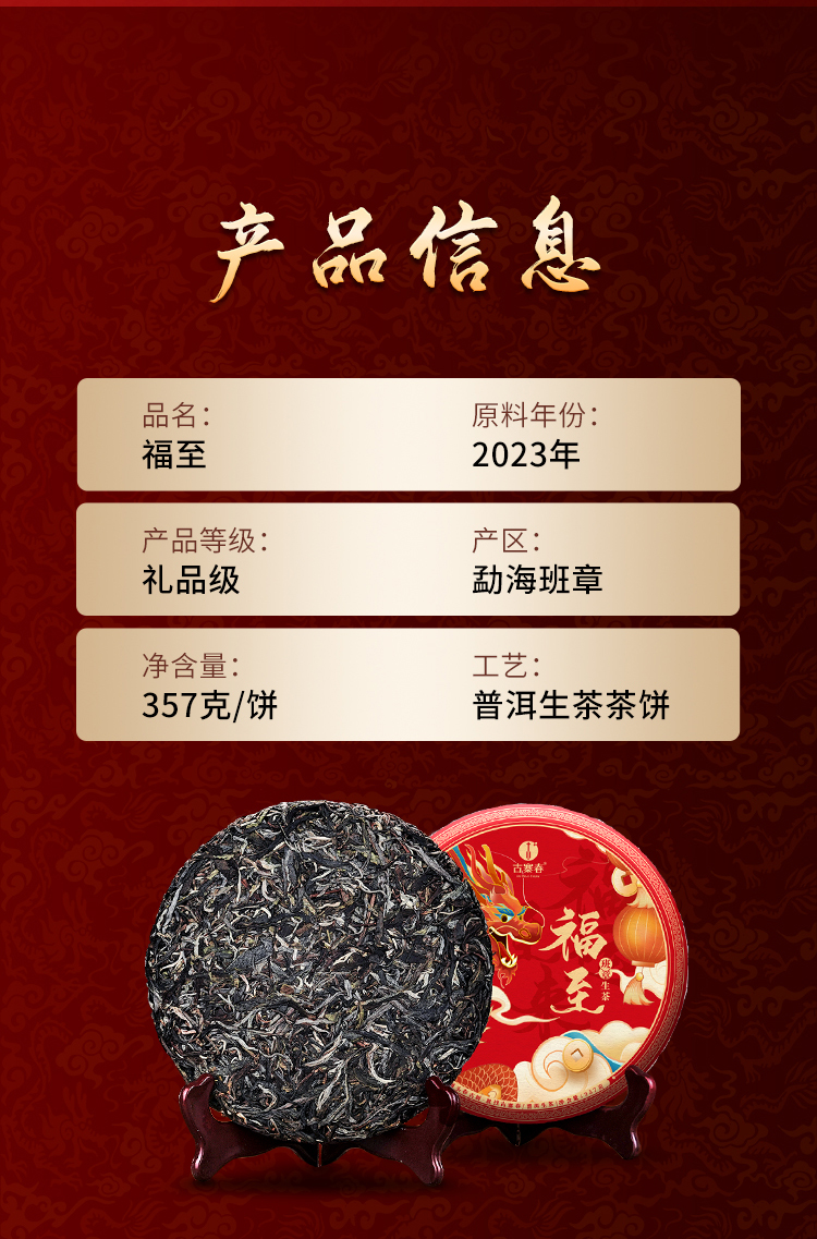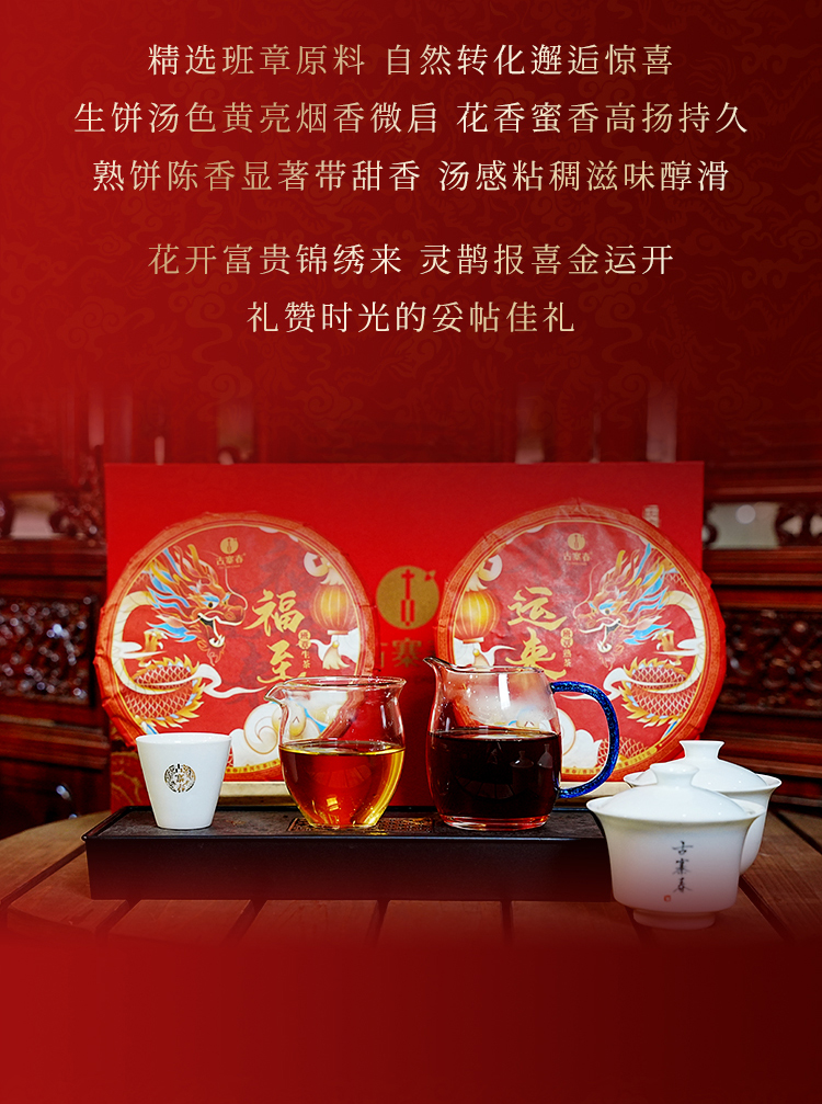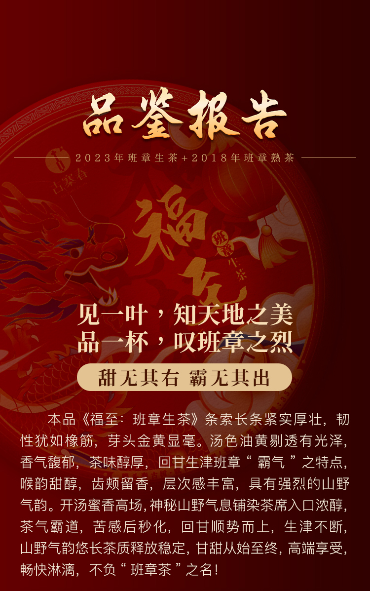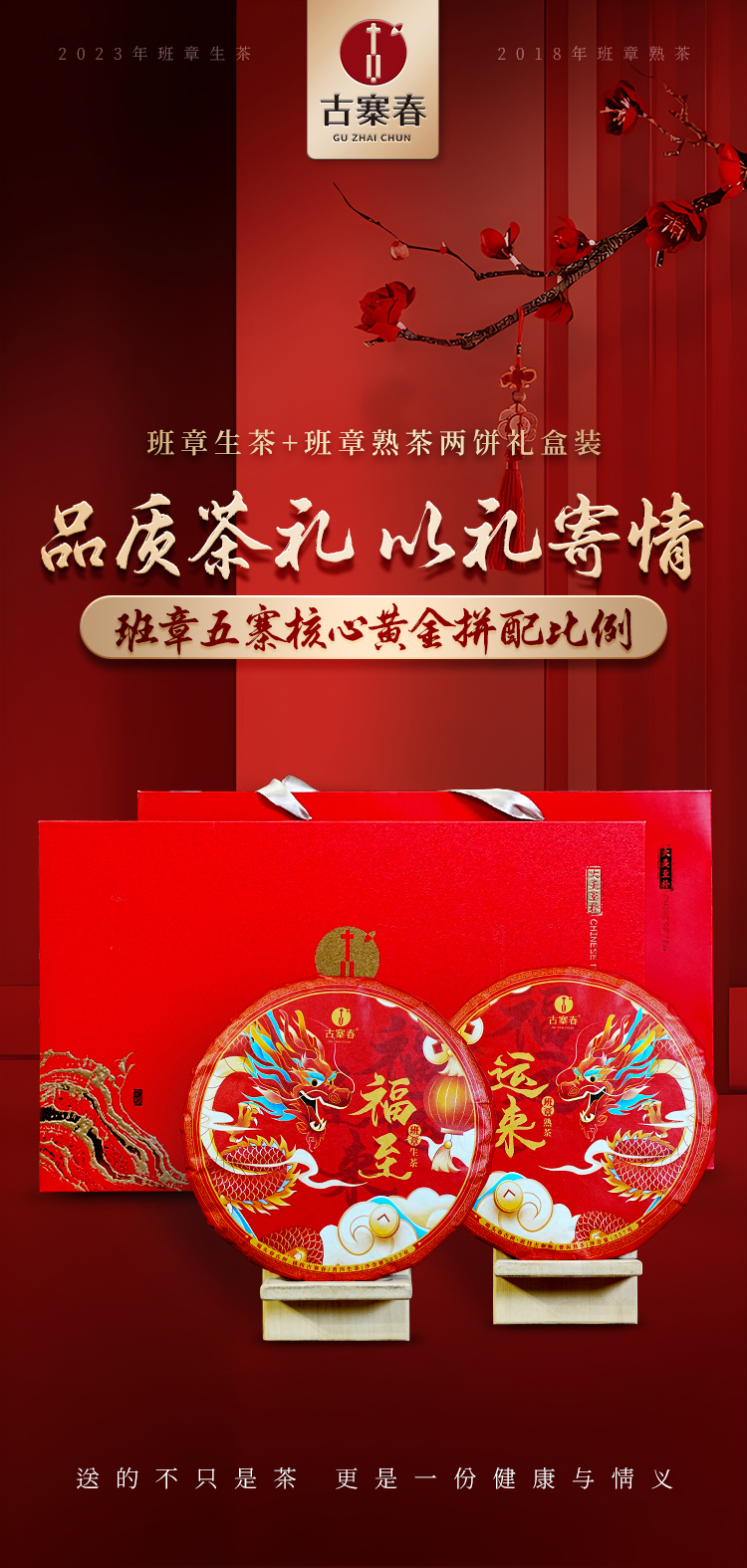 【福至运来】2023年班章生茶+2018年班章熟茶两饼礼盒装,班章五寨核心黄金拼配比例, 品质茶礼 以礼寄情,357克*2饼 拍5发6