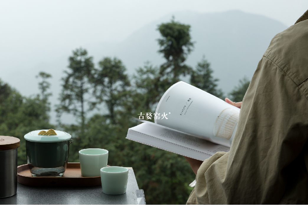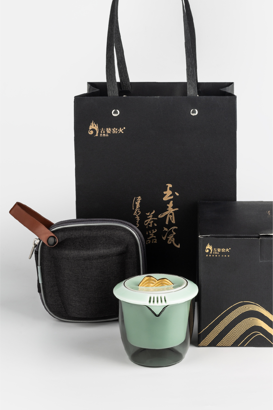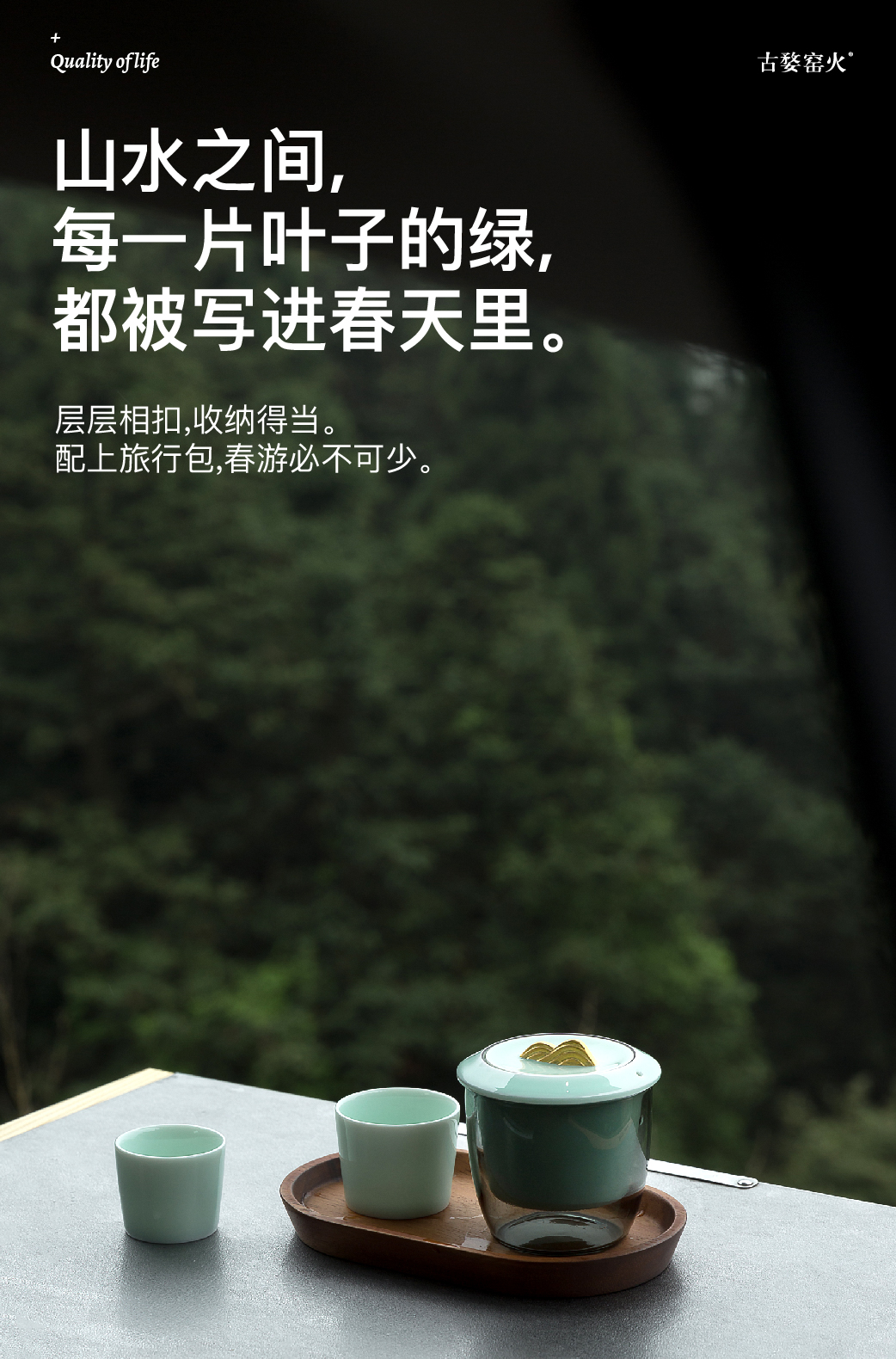古婺窑火 山水旅行茶具一壶二杯一公道 便携式快客杯