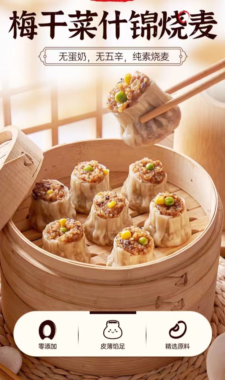 ☀ 纯素梅干菜什锦烧麦,无五辛、无蛋奶,零添加、皮薄馅足,美味可口!