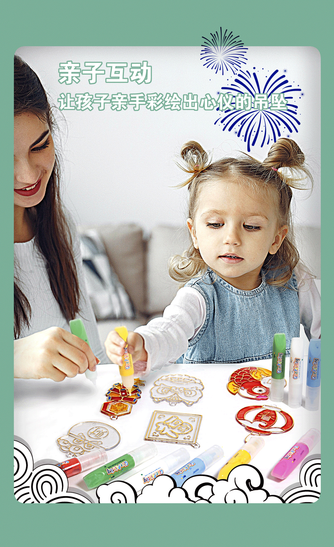 福利🧧【DIY新年免烤胶画】儿童免烤胶画新春水晶胶画 diy手工涂鸦画女孩创意套装礼物 玩转梦幻色彩