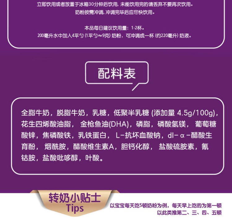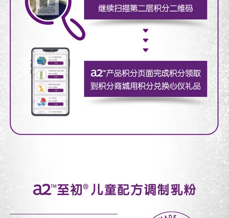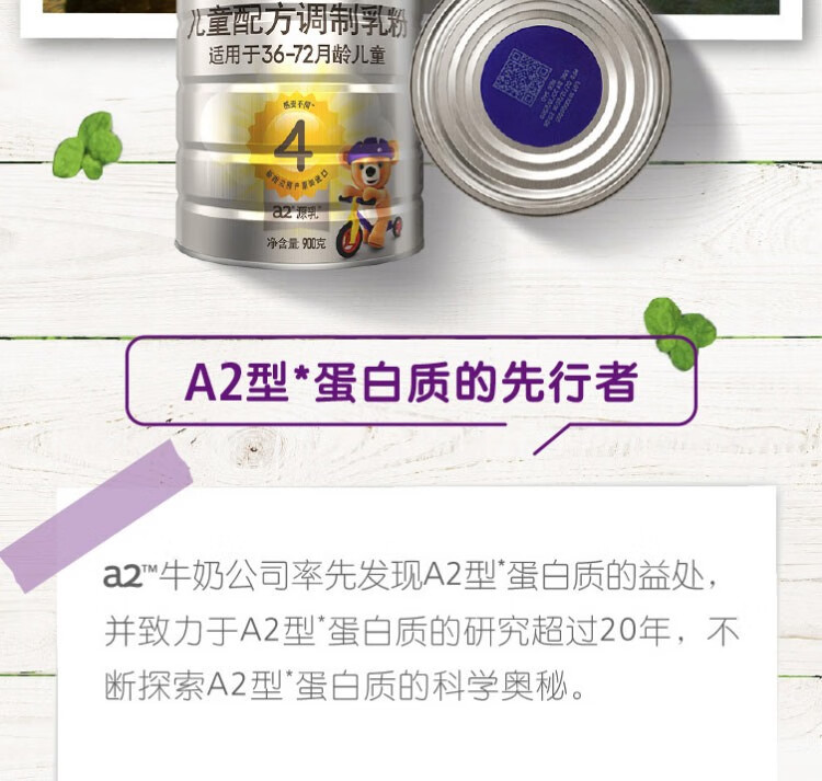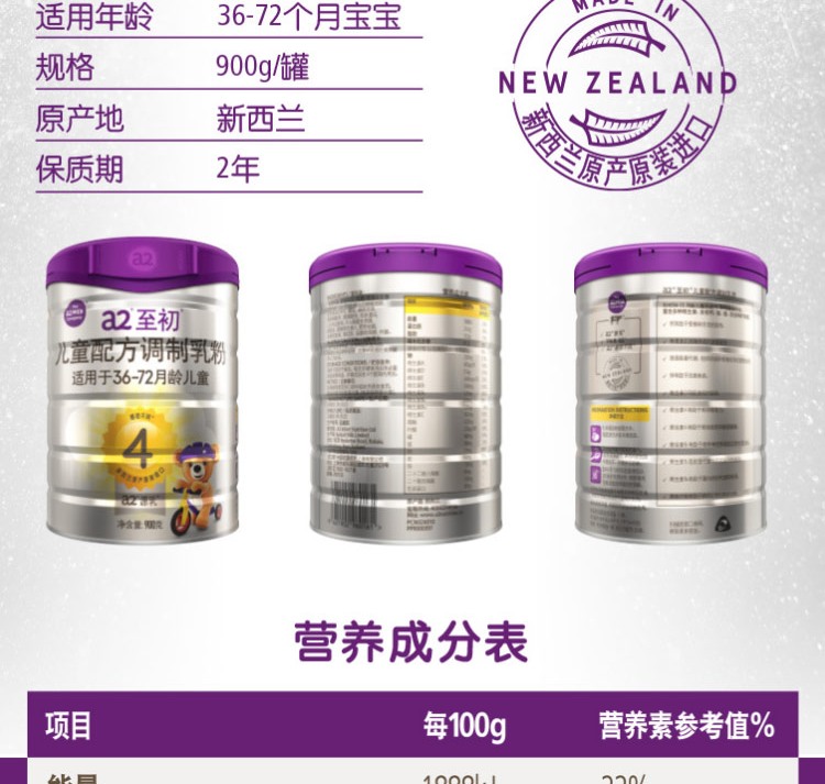 a2至初 新西兰进口 儿童配方调制乳粉 36-72月龄儿童4段 900g