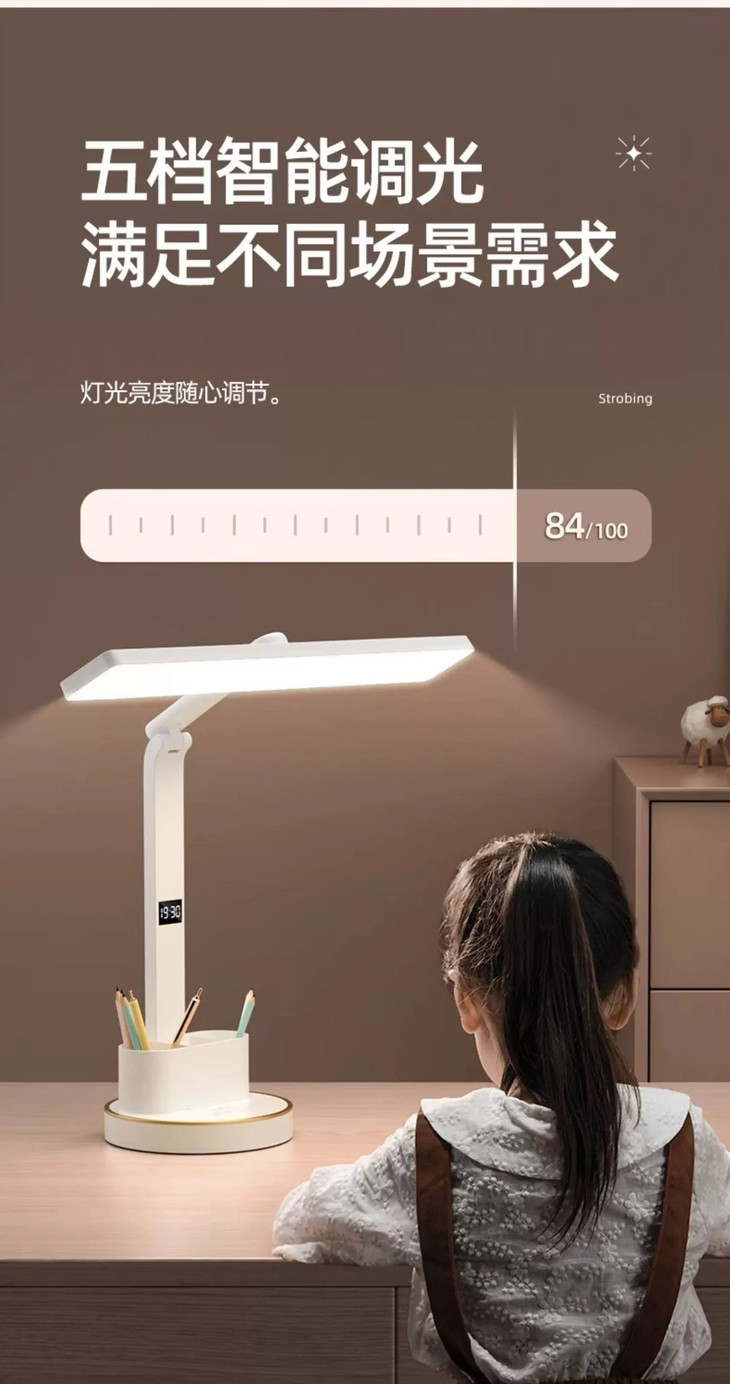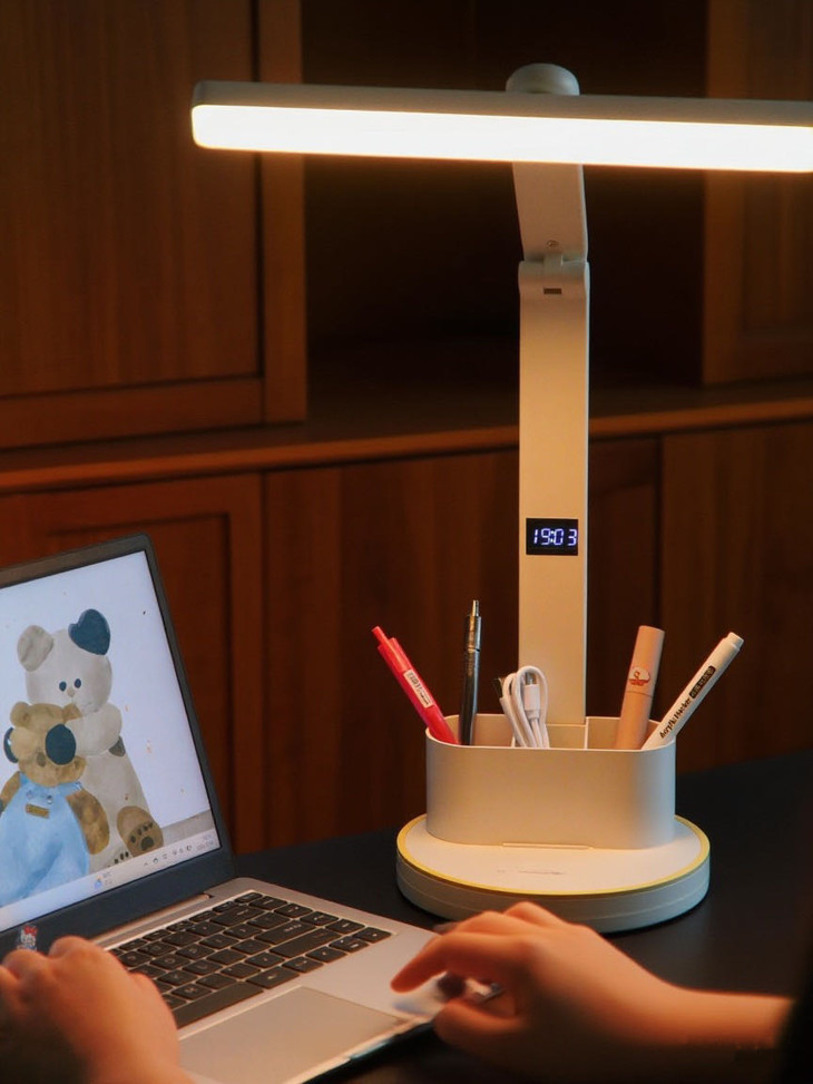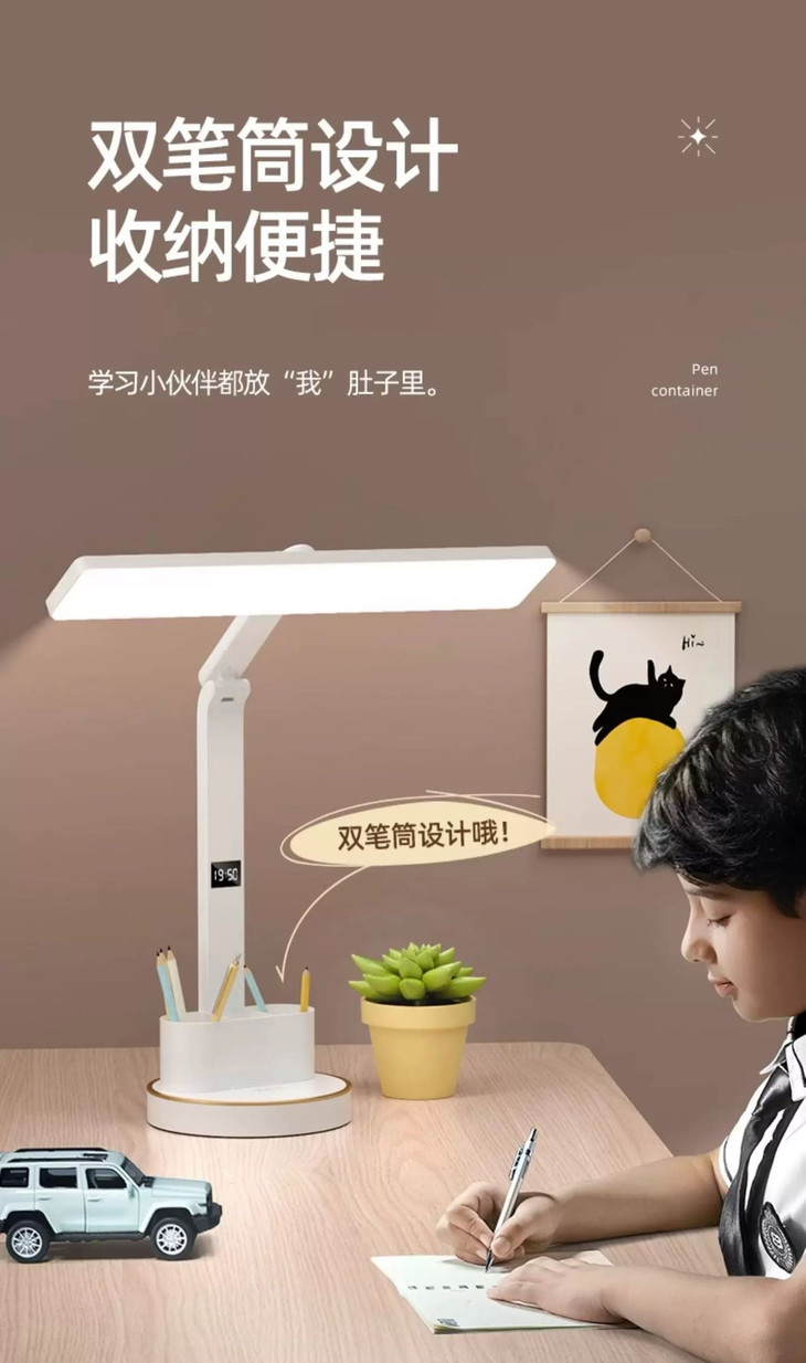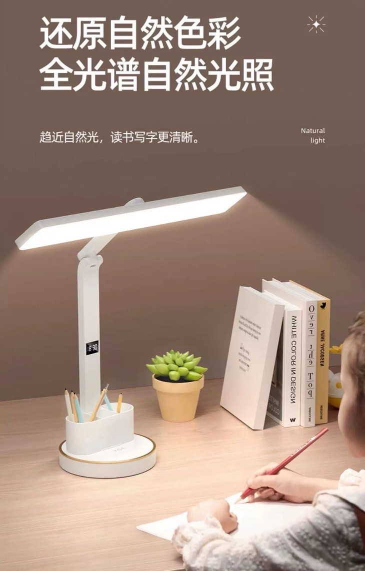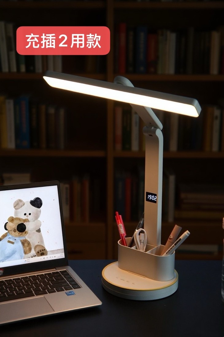 🔻🔻 充插2用时钟款:💰79元 长续航电池、LED时钟显示 五档亮度调节、三档色温调节、多角度调节 全光谱灯珠、可拆卸双笔筒、无蓝光危害