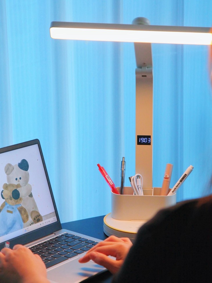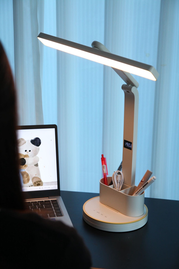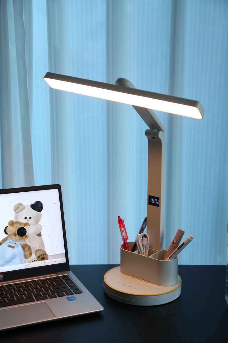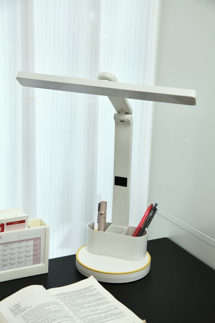 质感满满,摆在那里就是高级细节无可挑剔 ✅采用全光谱芯片 ✅有效护眼区域198.4cm² ✅72颗LED高亮灯珠,专业定制超大发光面 ✅全光谱、无眩光、RG0豁免级蓝光等级 ✅3档亮度/色温可调节,写字灯,夜灯轻松胜任 ✅可多角度调节,能找到最合适的光线角度 ✅赠送可拆卸双笔筒,照明收纳全搞定 ✅简约优雅白,获得外观专利证书