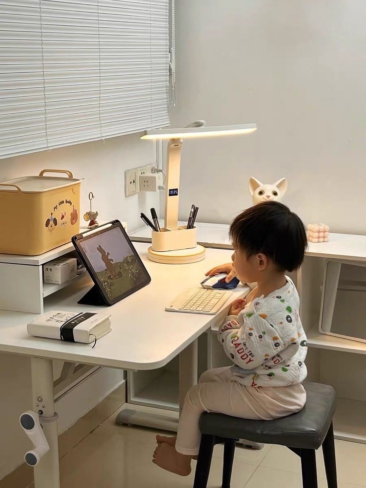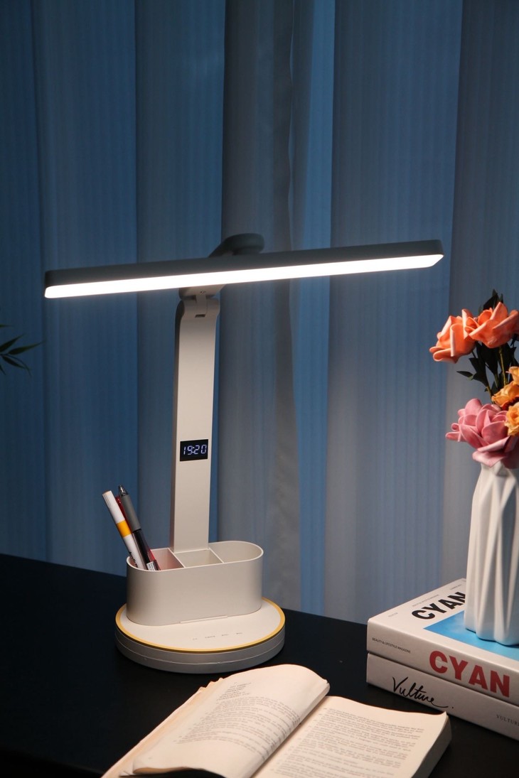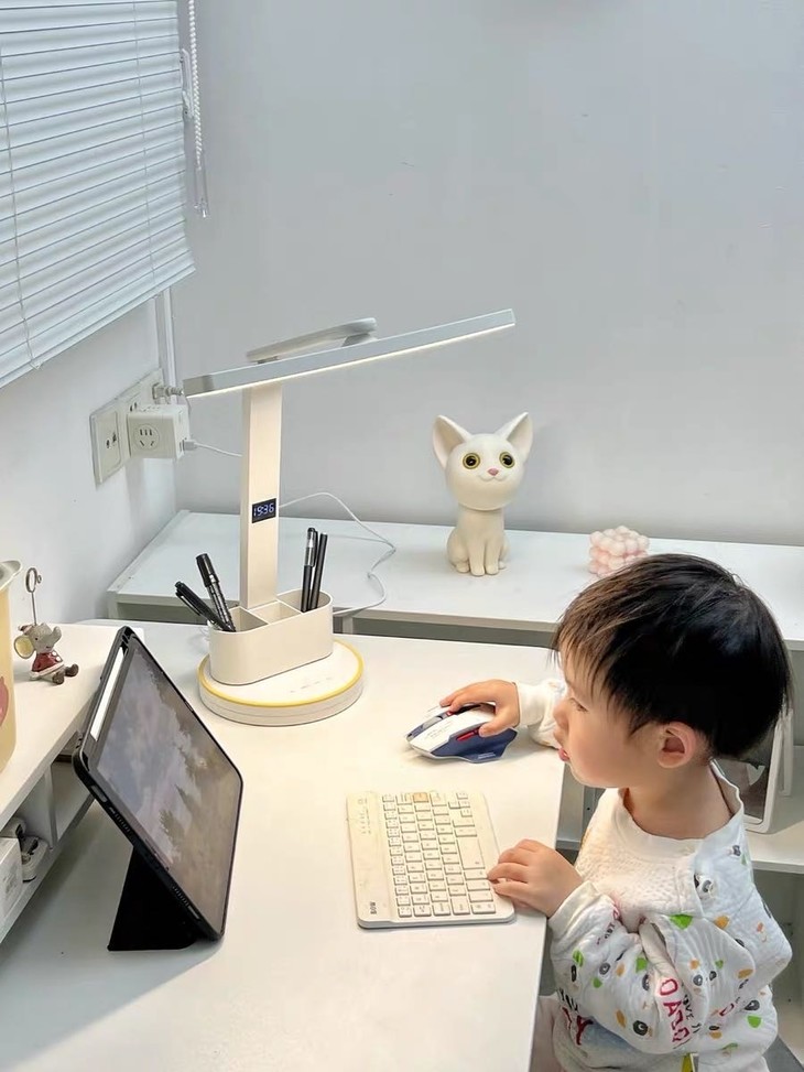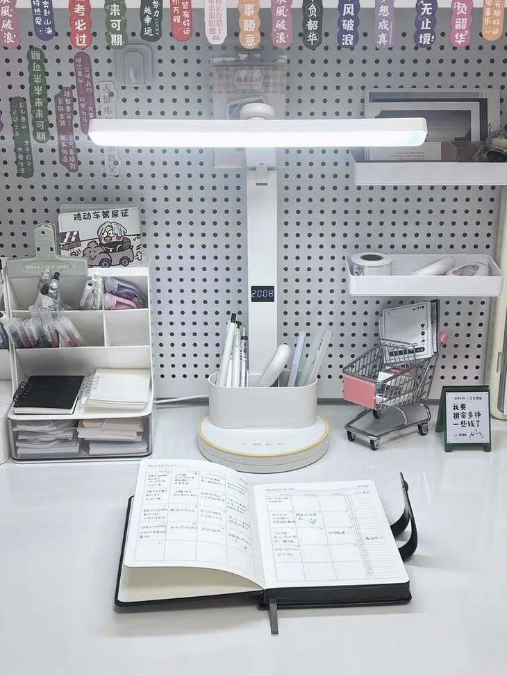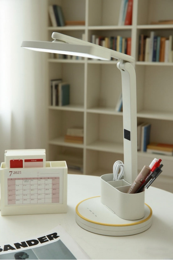 质感满满,摆在那里就是高级细节无可挑剔 ✅采用全光谱芯片 ✅有效护眼区域198.4cm² ✅72颗LED高亮灯珠,专业定制超大发光面 ✅全光谱、无眩光、RG0豁免级蓝光等级 ✅3档亮度/色温可调节,写字灯,夜灯轻松胜任 ✅可多角度调节,能找到最合适的光线角度 ✅赠送可拆卸双笔筒,照明收纳全搞定 ✅简约优雅白,获得外观专利证书