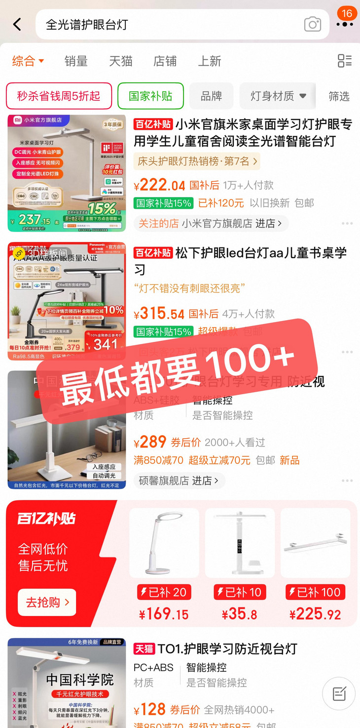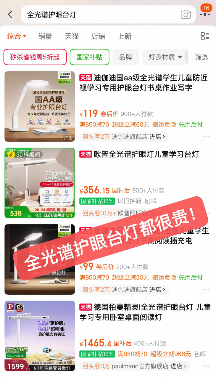 在对比了多款全光谱护眼灯后 从综合全光谱表现、亮度表现、色温和显色指数 其他功能以及性价比来看 几十元的【塞尔兰斯护眼台灯】 用百元内价格直打大几百灯!! 绝对是最有性价比的卷王灯❗ 🔺某宝同品质护眼灯:200+ 🔺我们开团价仅:¥49起