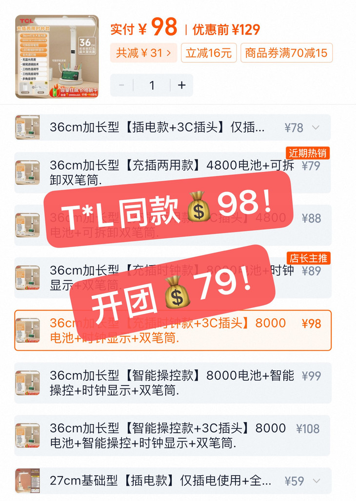 配置我帮你们看过了 虽然比不上大几千那种 但这一款核心参数比国家教室照明标准还要优秀 ✅充电时钟款、插电款2款可选 买一台=一个护眼台灯➕手机支架➕笔筒 才59元起,性价比太高了❗❗