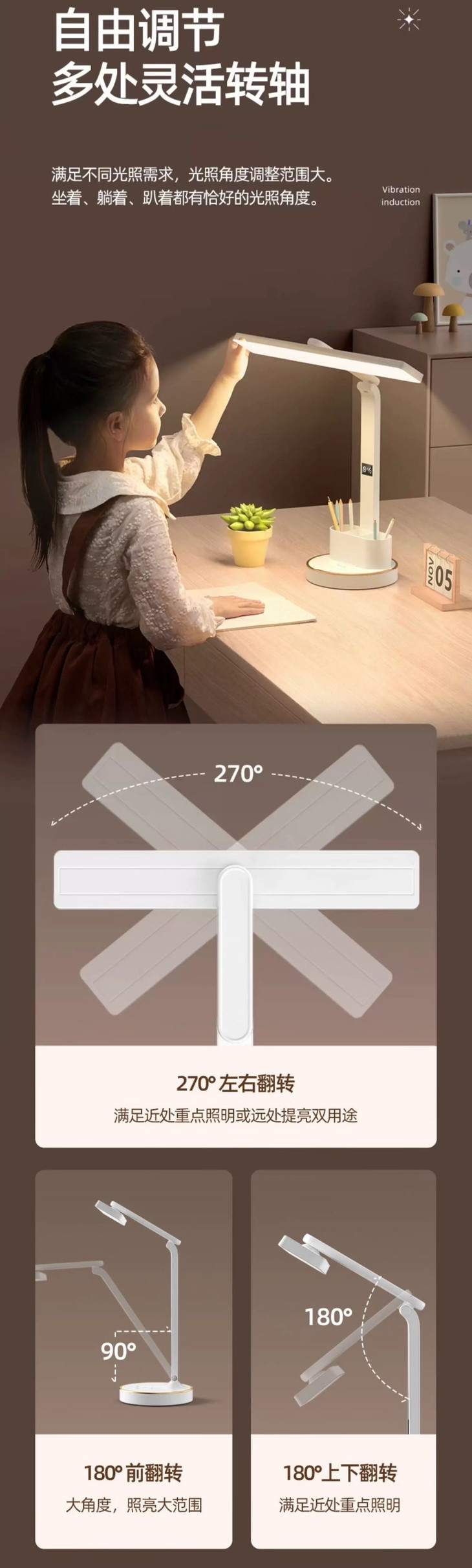 ✅多角度随心调节 可以随心所欲地调整光线方向 为不同的场景创造最舒适的照明效果 不管你是在读书、工作还是休息 这个台灯都能随时提供柔和的光线 让你的眼睛感到舒适!!