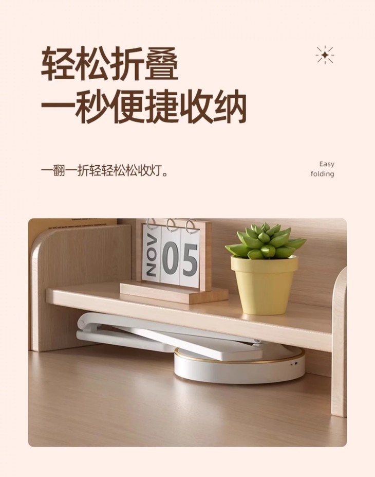 很多很多功课,看了各种资料后 终于找到了这台——【塞尔兰斯·便携式折叠台灯】 ✅高于国AA级照度!不伤眼不眩目 ✅RA97级高显色好光线,呵护视力 ✅RG0无蓝光危害!柔光护眼 一打开,暖白的灯光铺满桌面 看东西清晰、舒适,几个小时不累 可以根据需要调整光线角度 无论阅读、写作还是玩游戏都能找到最合适的角度!
