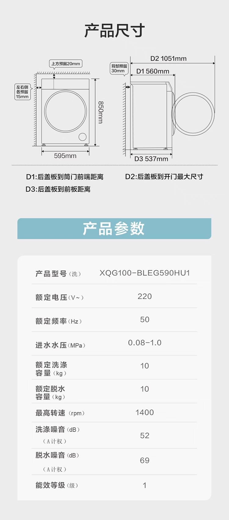 海尔(Haier)洗衣机 XQG100-BLEG590HU1