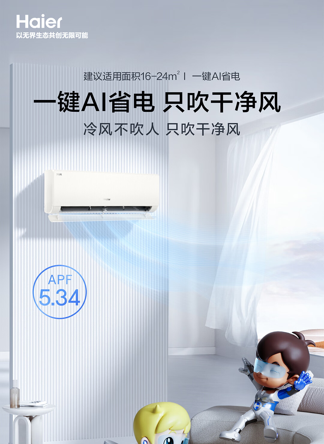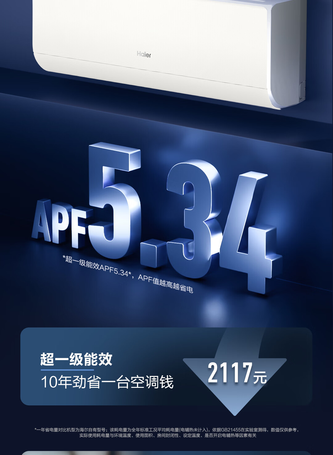 海尔空调1.5匹挂机 新一级能效变频冷暖家用壁挂式 净省电KFR-35GW/P2-1以旧换新