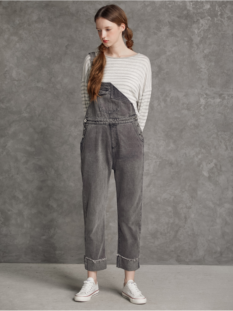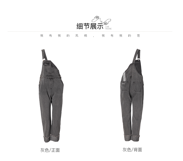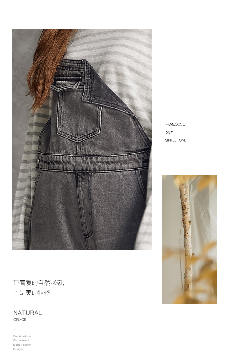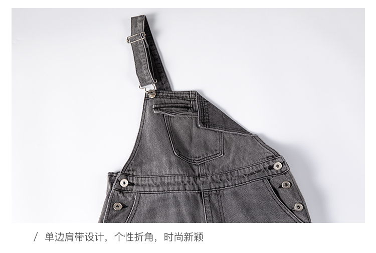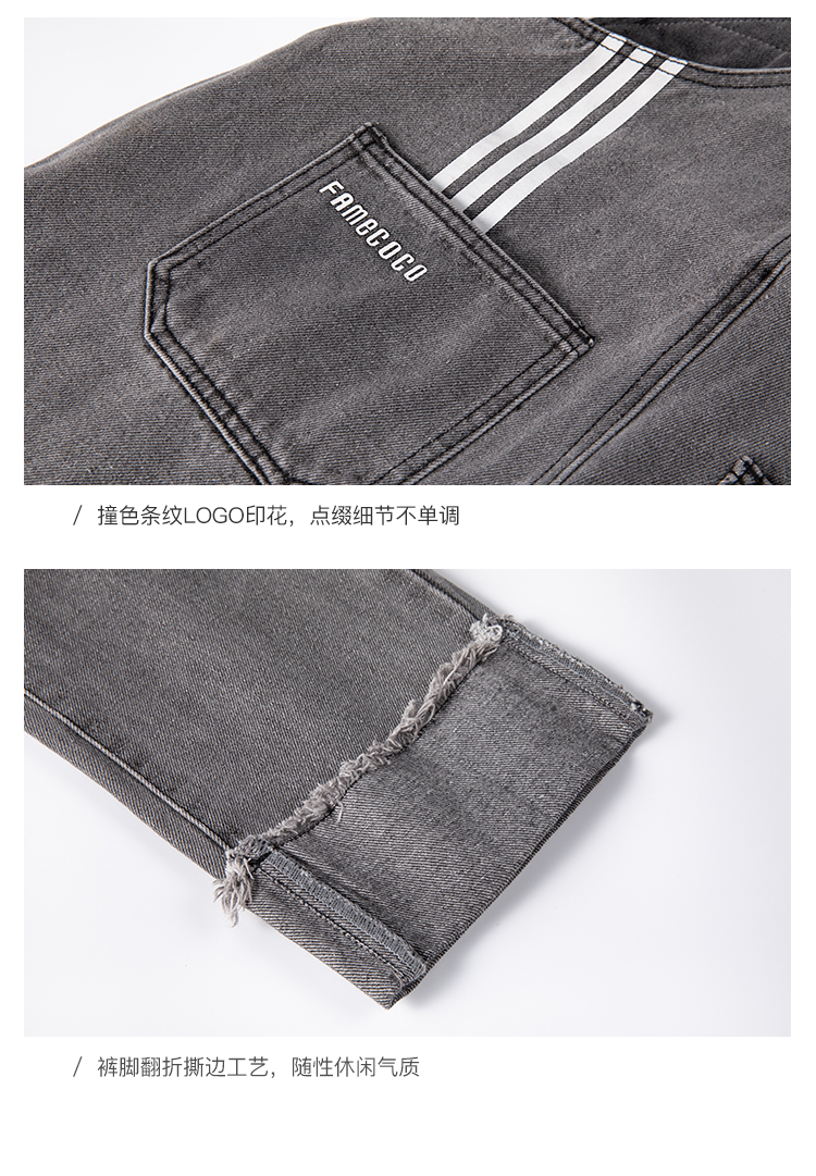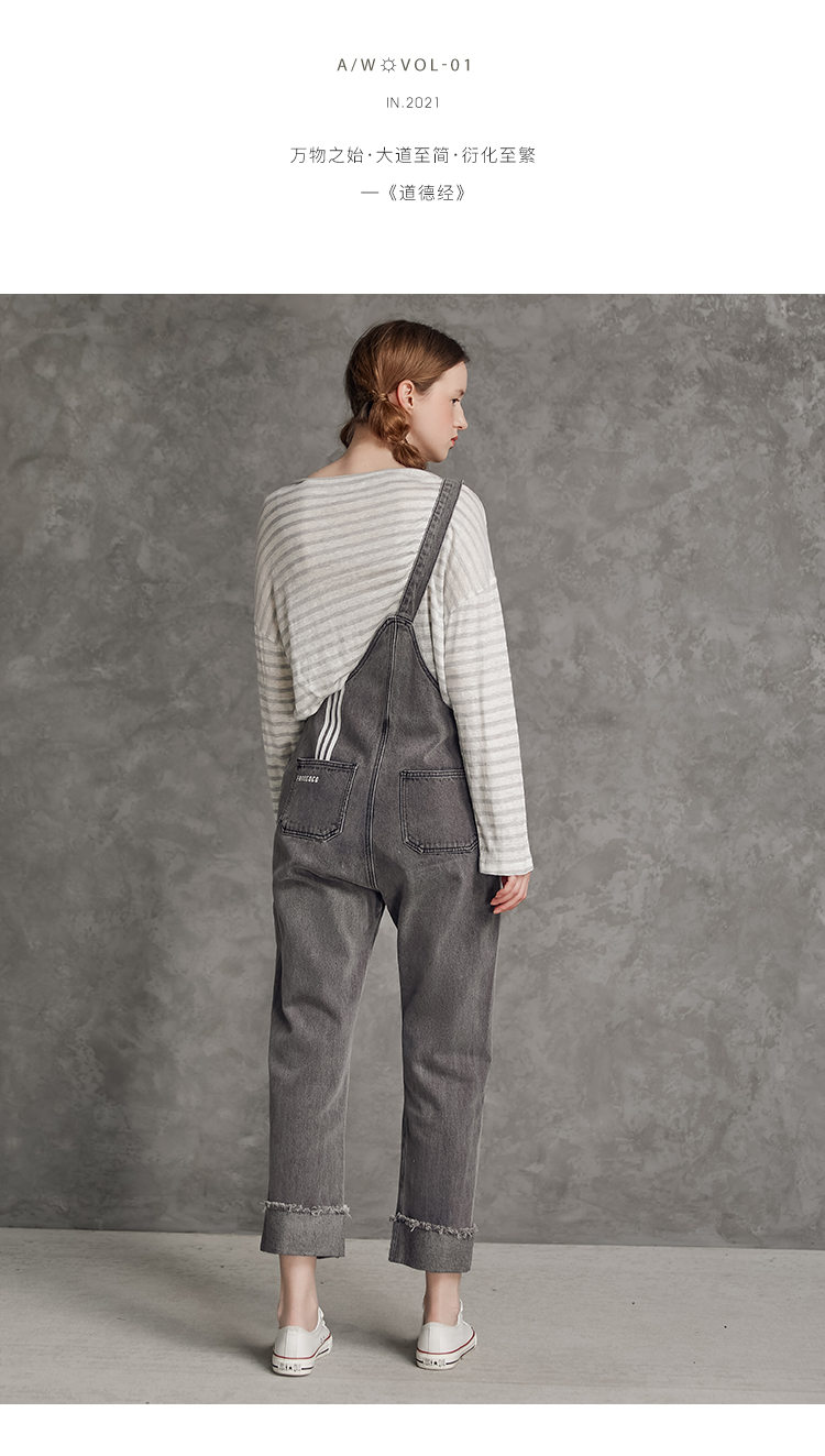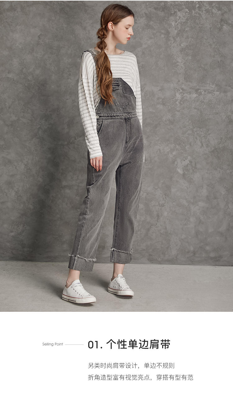 famecoco范可儿单肩背带牛仔裤春夏女士九分裤宽松翻边裤脚F195GA013