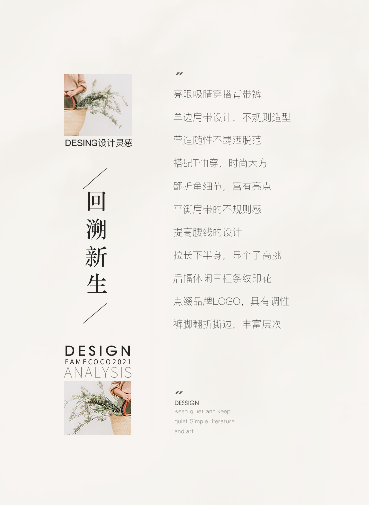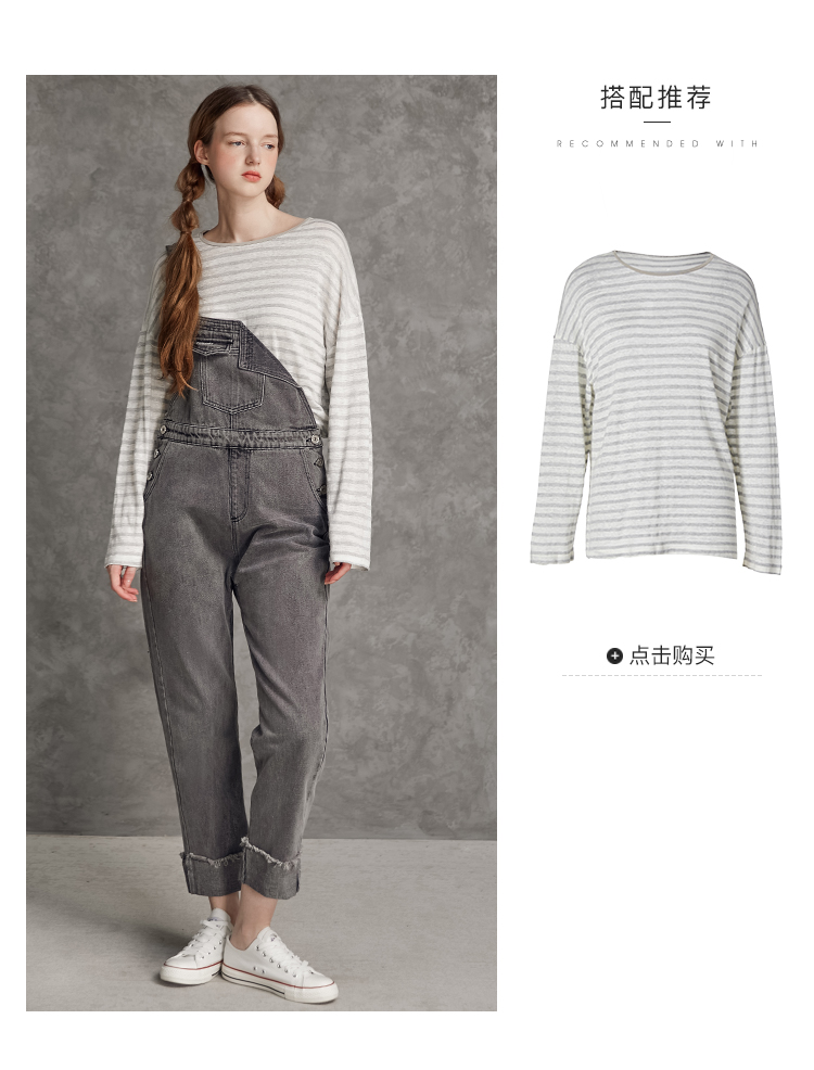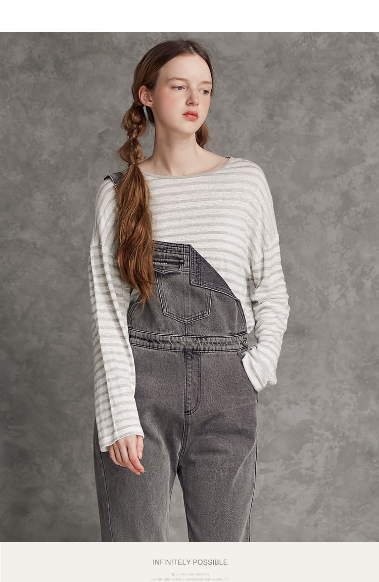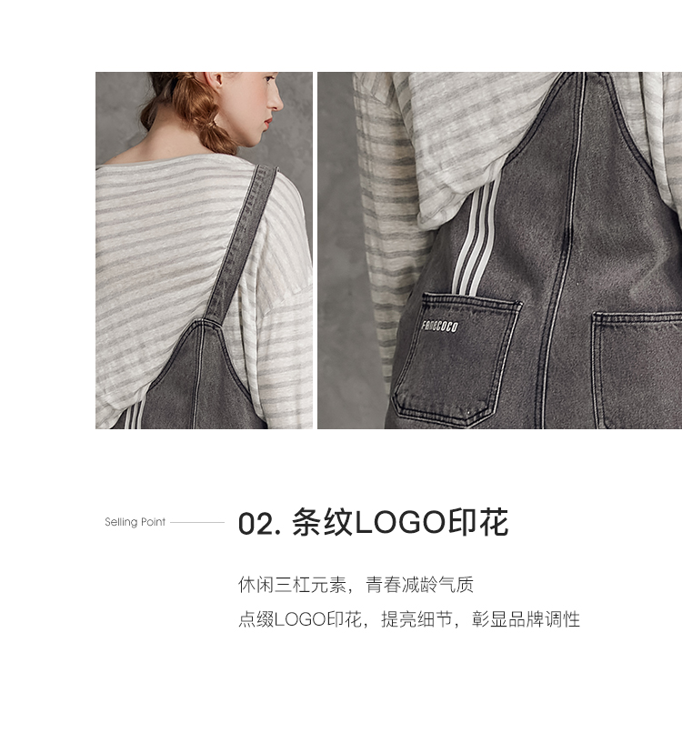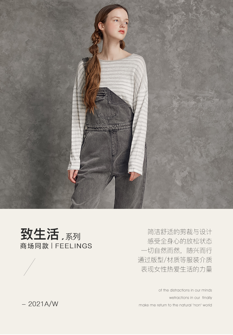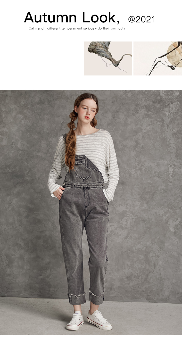 famecoco范可儿单肩背带牛仔裤春夏女士九分裤宽松翻边裤脚F195GA013