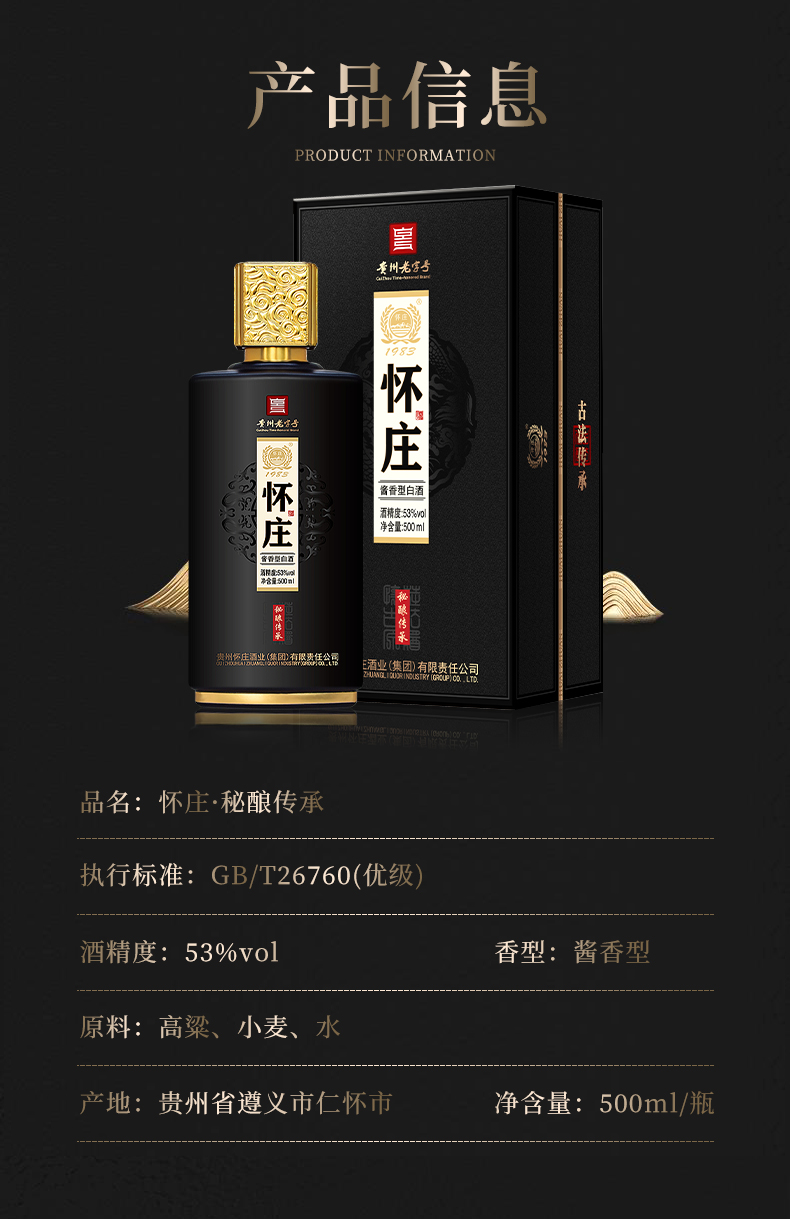 怀庄秘酿传承 酱香型白酒 53度 高度酒送礼自饮 500mL*6瓶整箱装