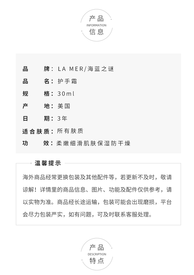 LA MER海蓝之谜手部修护霜30ml中小样 滋润保湿 润手霜护手霜