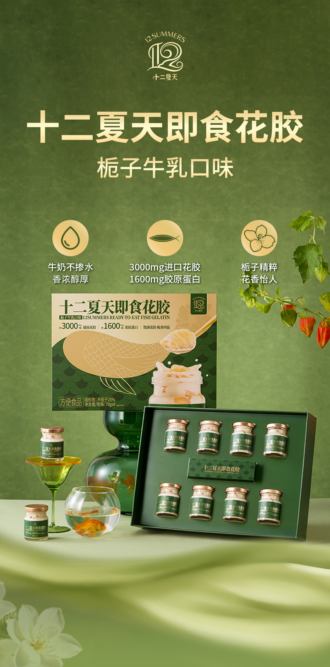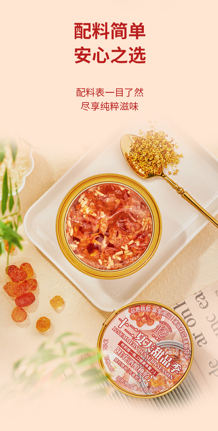 十二夏天爆款甜品系列,桂花酒酿桃胶 即食花胶栀子牛乳 陈皮莲子红豆沙 栀子牛乳绿豆沙
