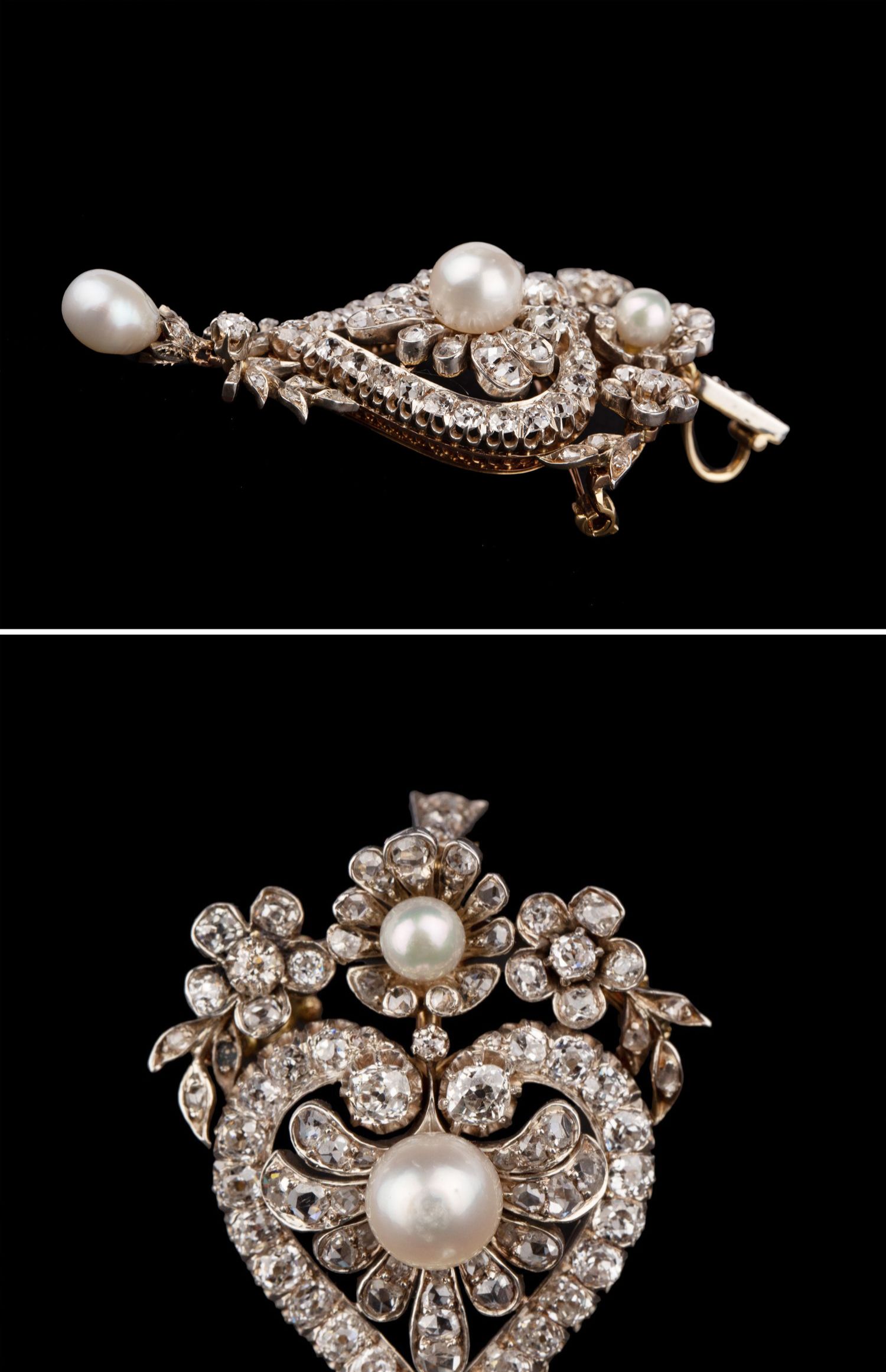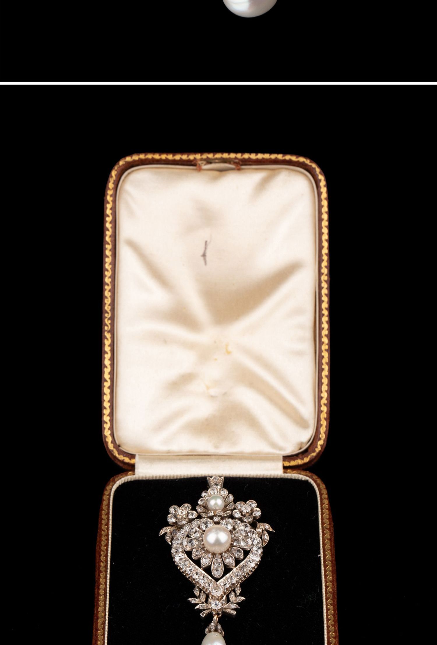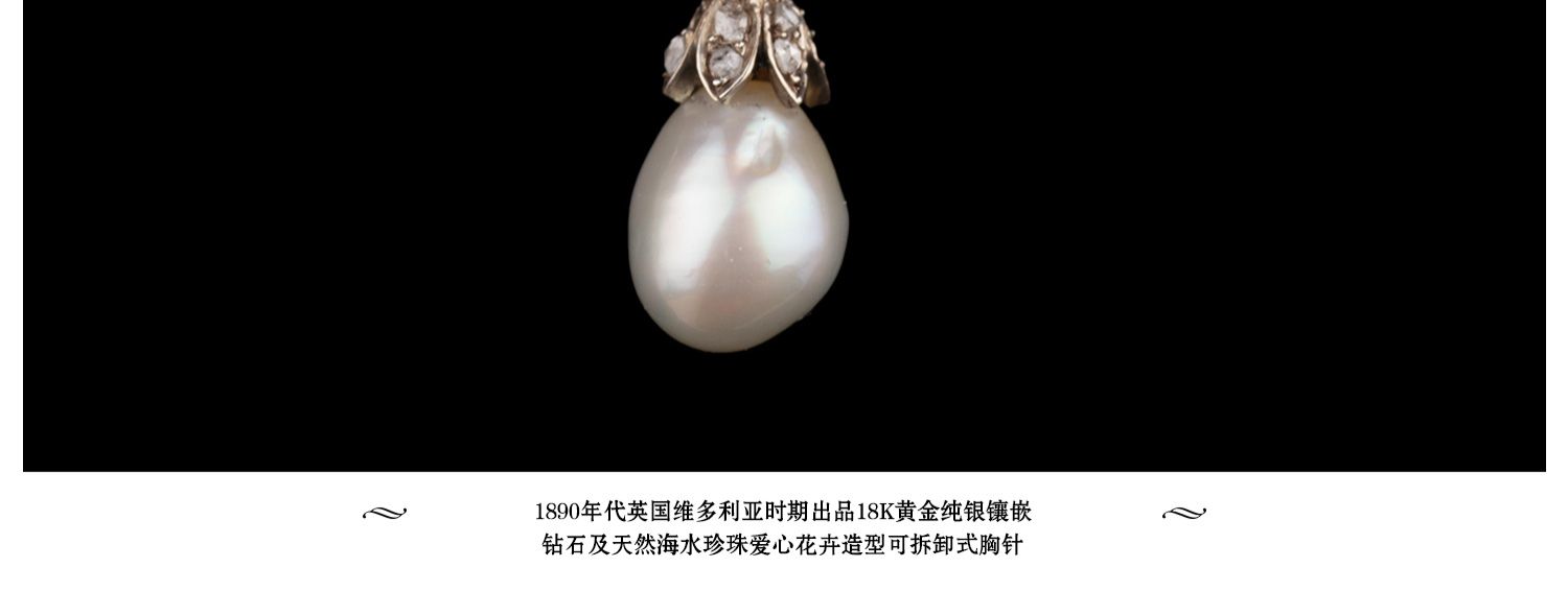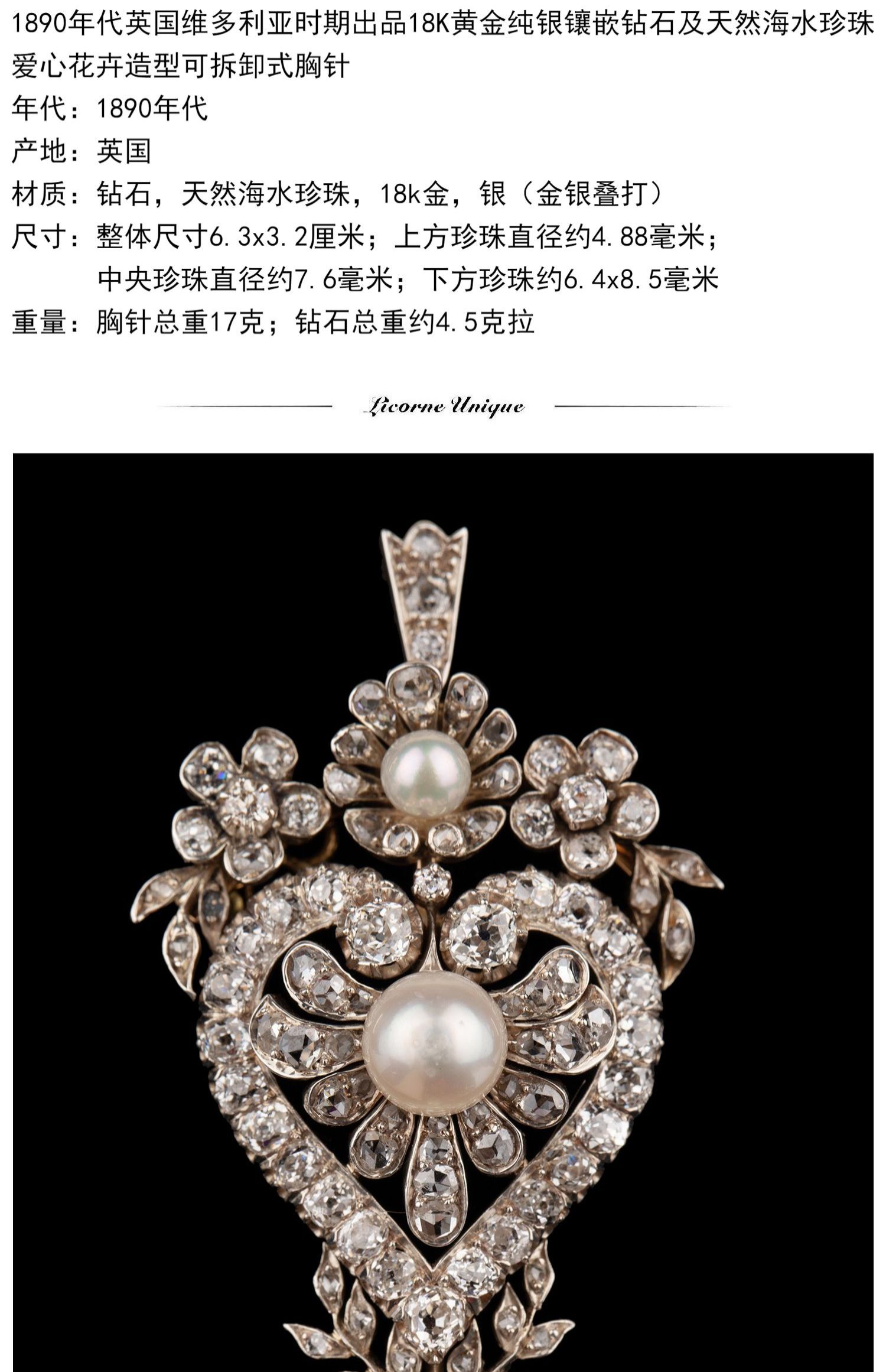 独角鹿西洋古董珠宝首饰18K黄金镶钻石海水珍珠爱心花卉胸针吊坠