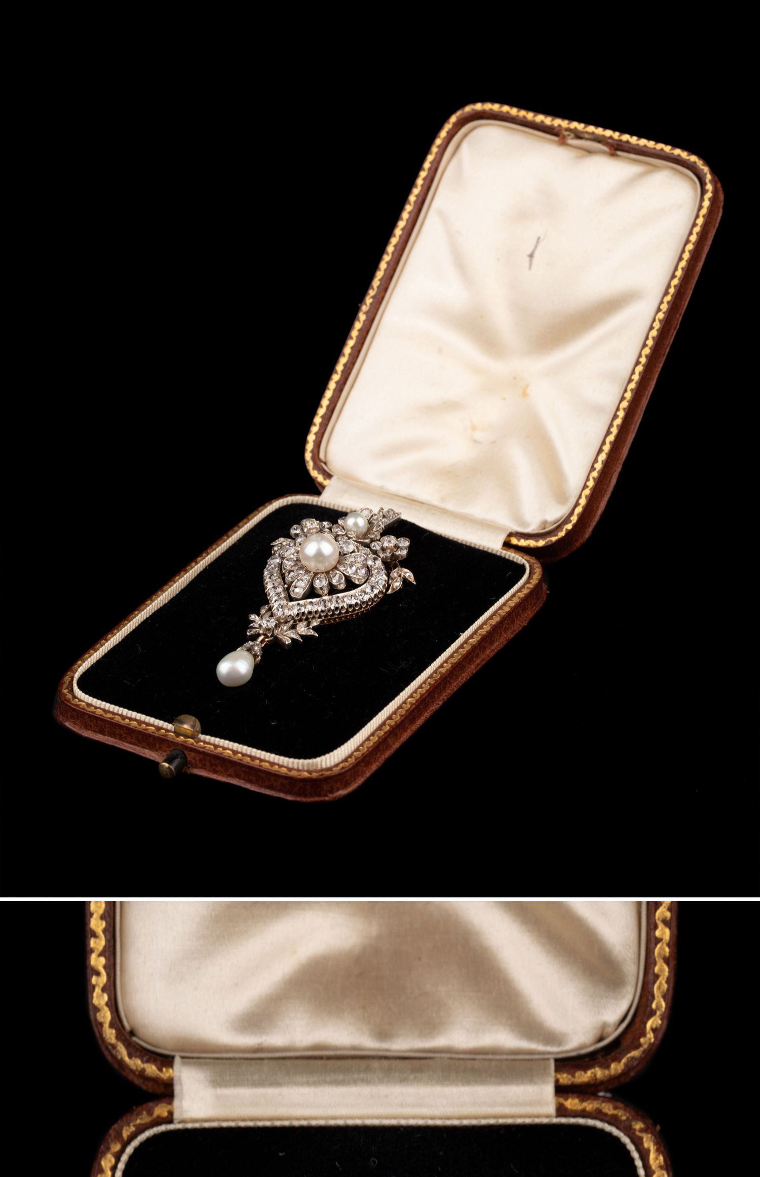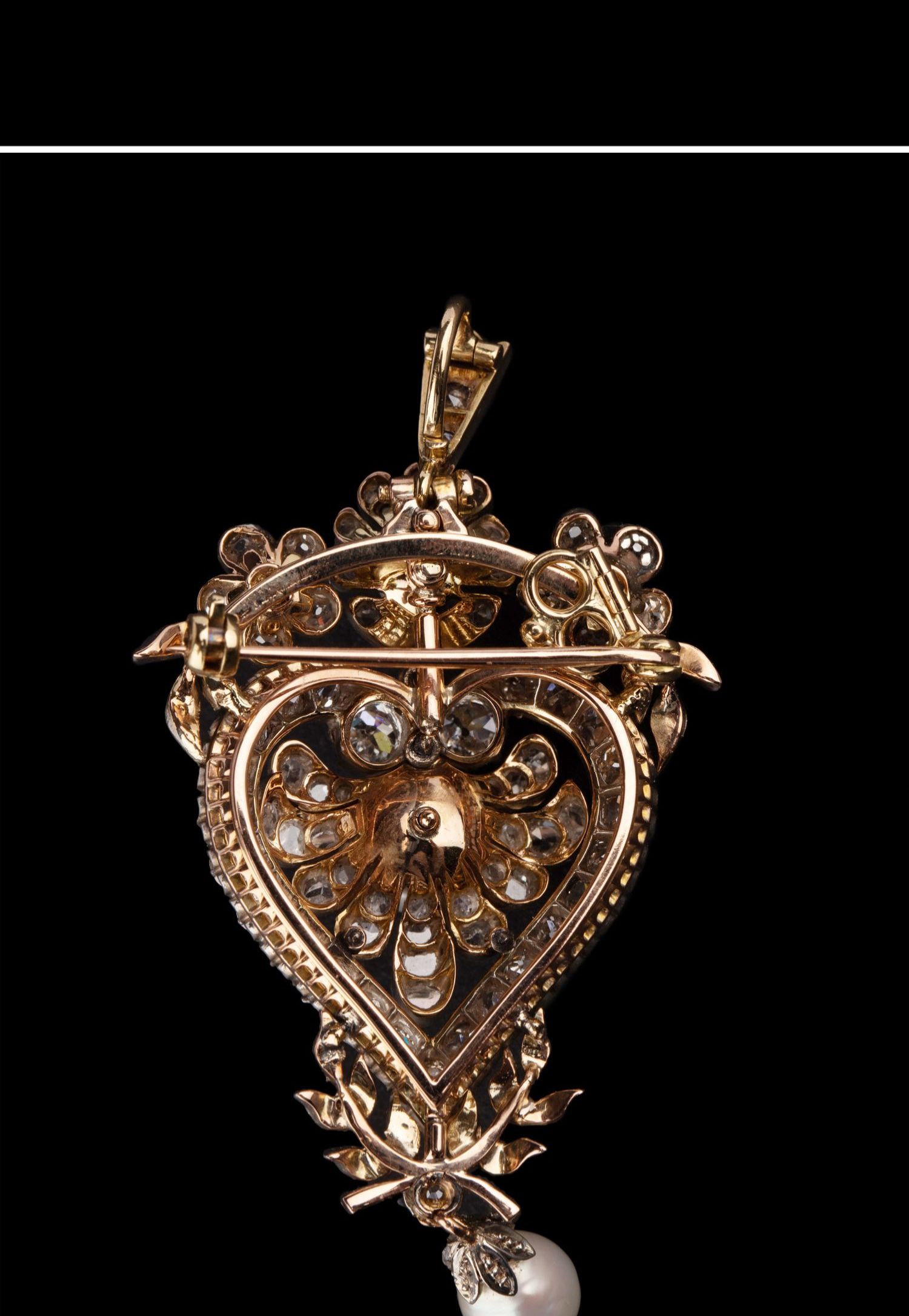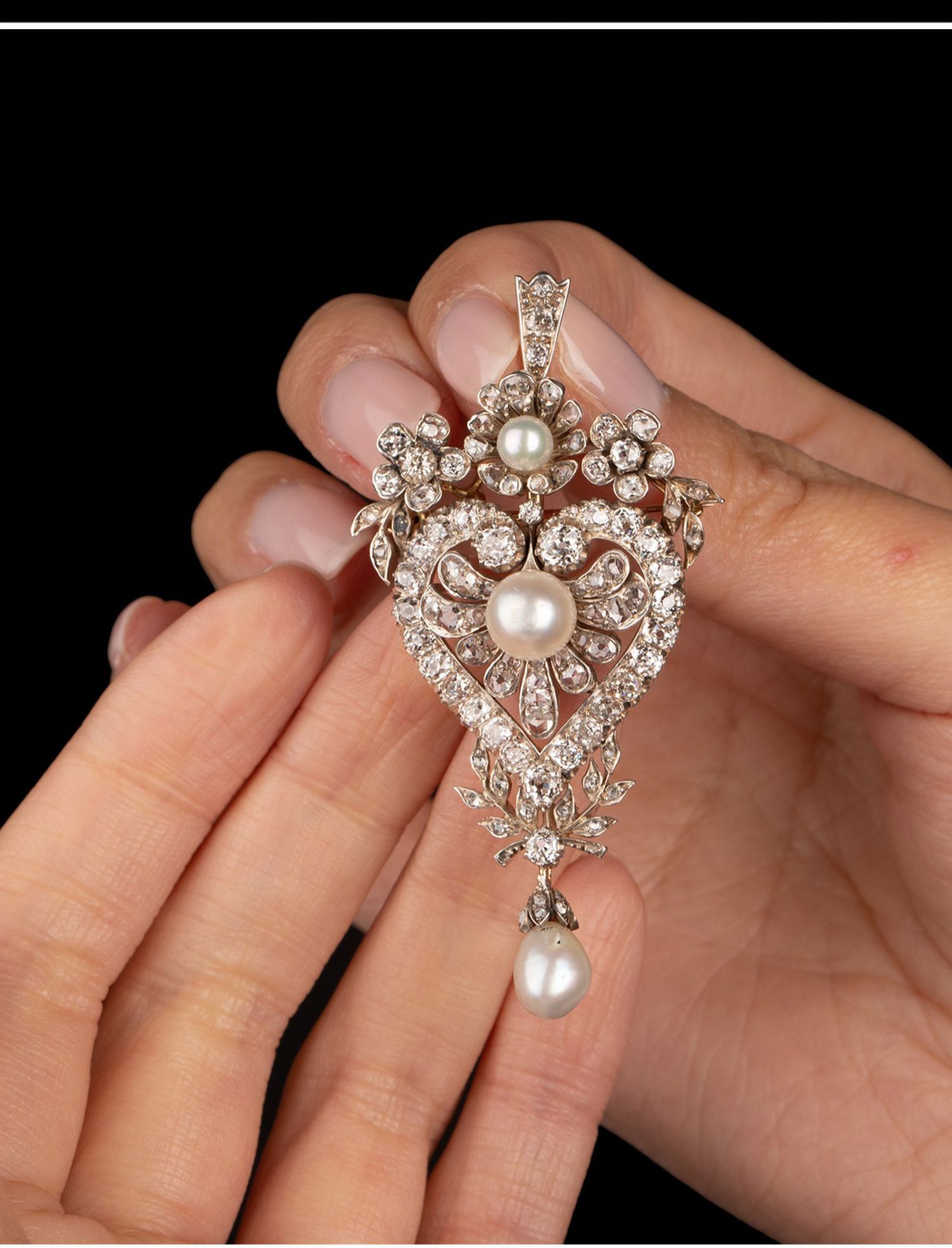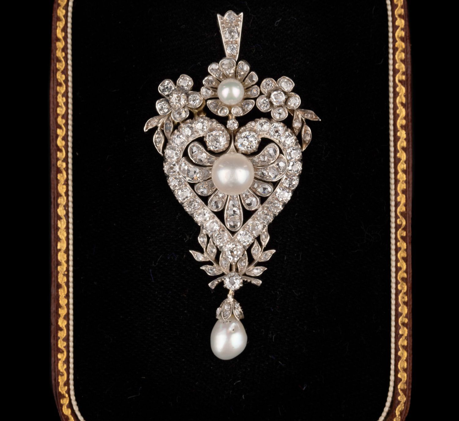 独角鹿西洋古董珠宝首饰18K黄金镶钻石海水珍珠爱心花卉胸针吊坠
