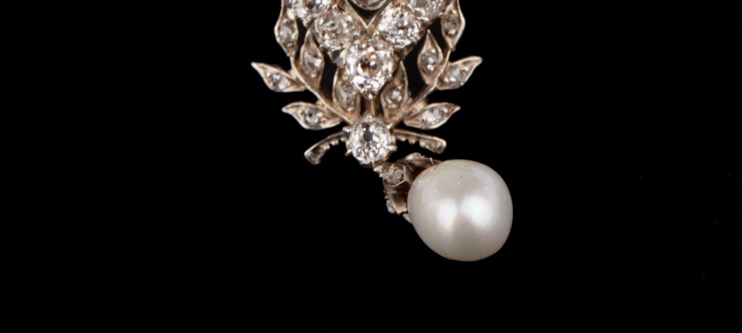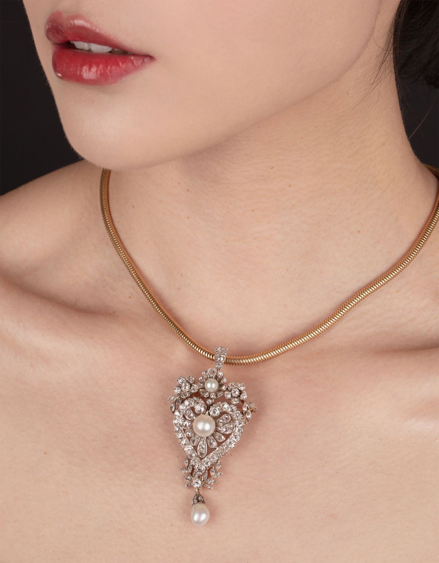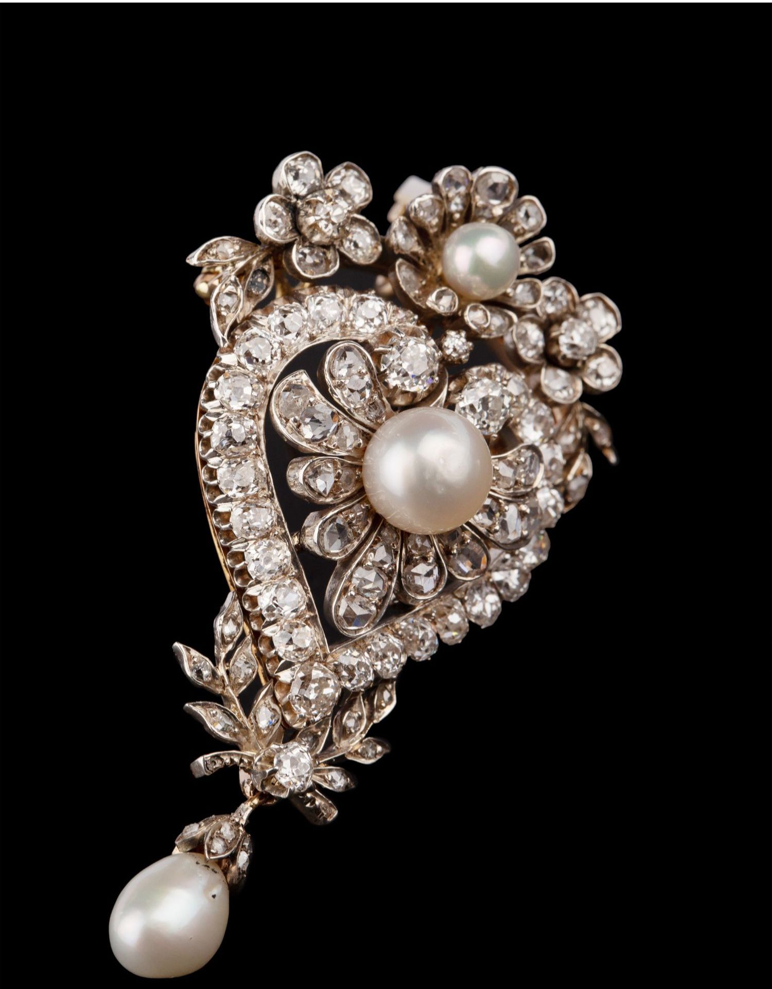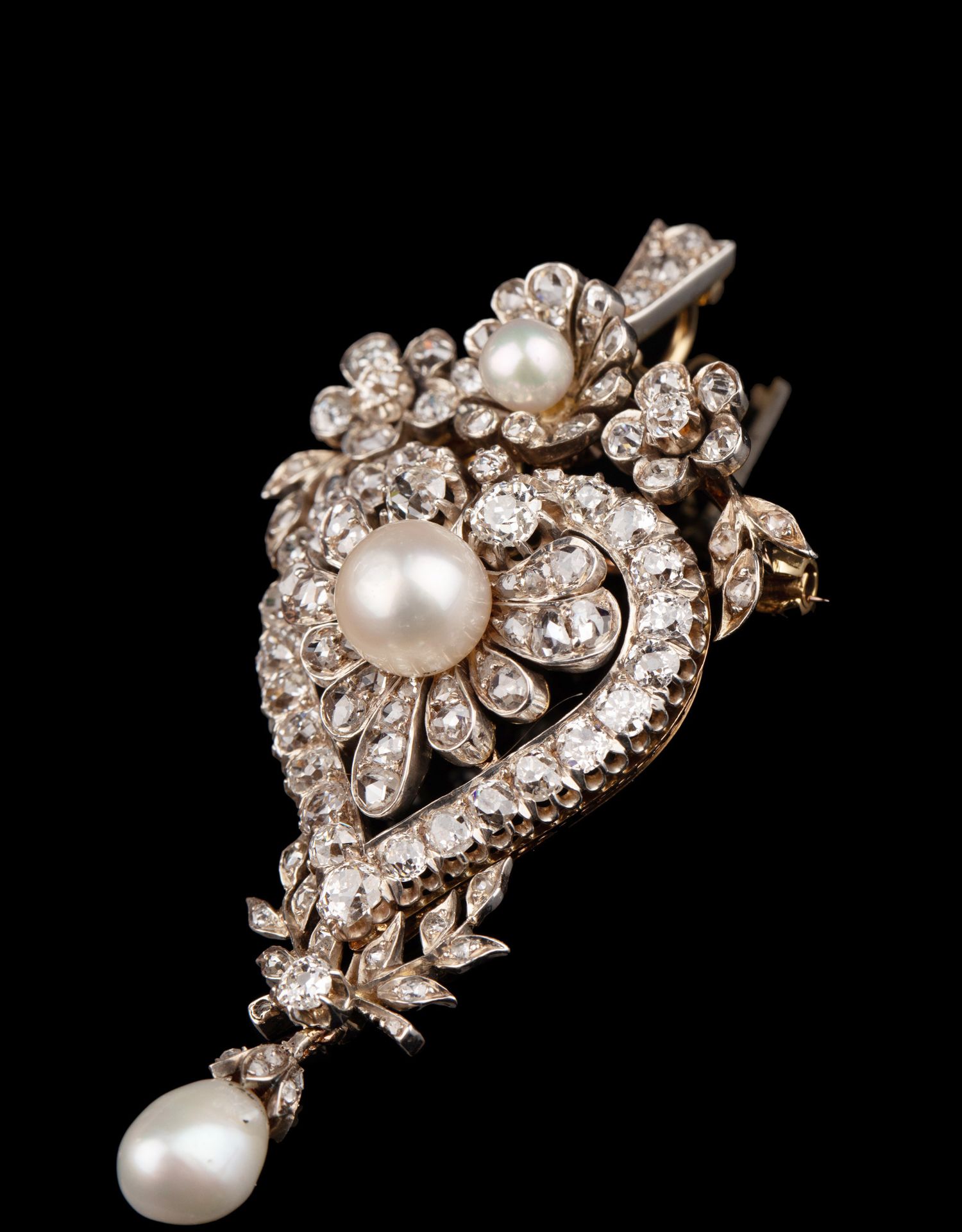 独角鹿西洋古董珠宝首饰18K黄金镶钻石海水珍珠爱心花卉胸针吊坠