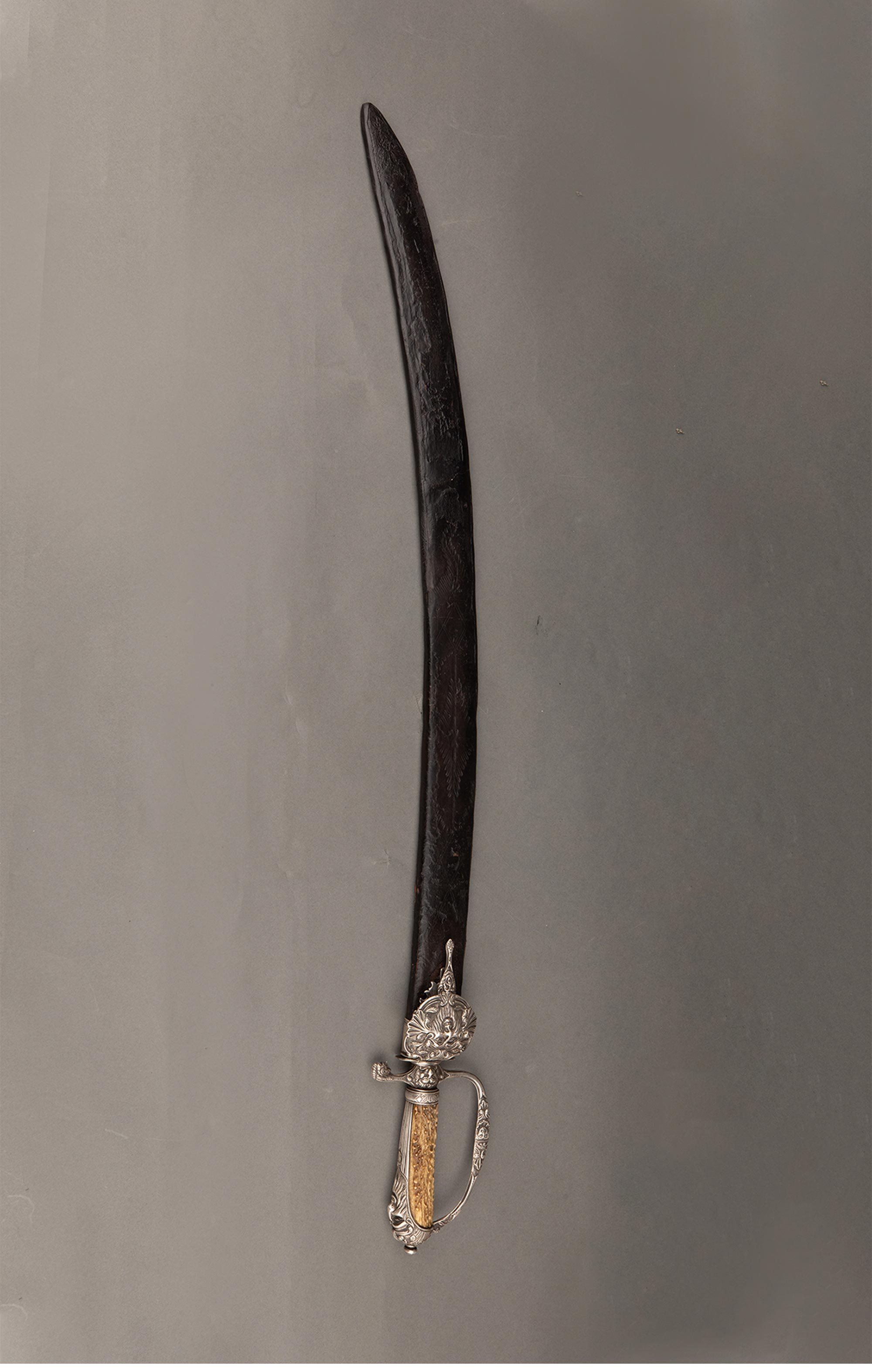 尺寸:总长约83厘米;刀柄长约14厘米;刀鞘长约69厘米,宽约8.5厘米