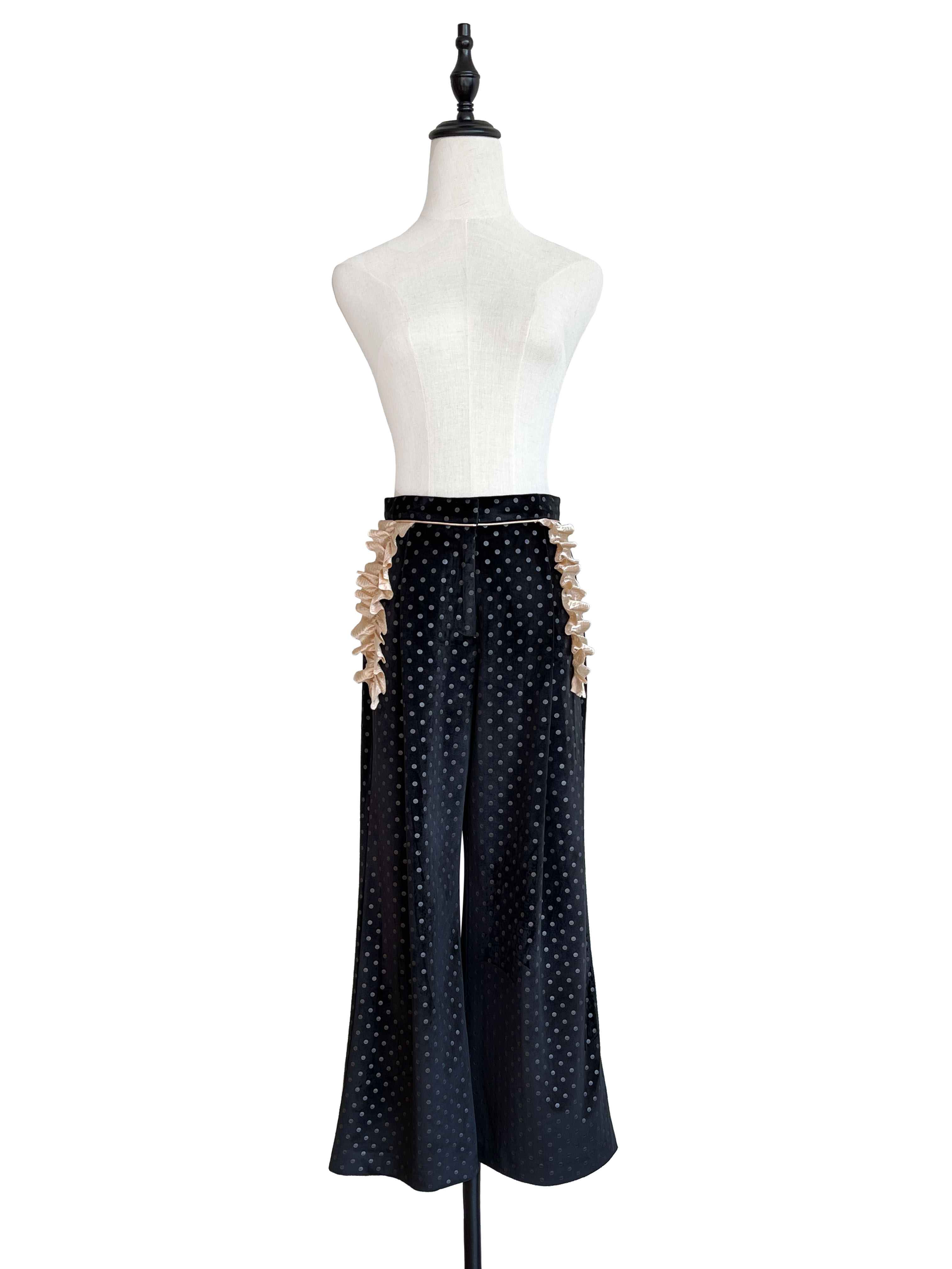 TYNVIE 花边袋口阔腿裤 - 黑丝绒