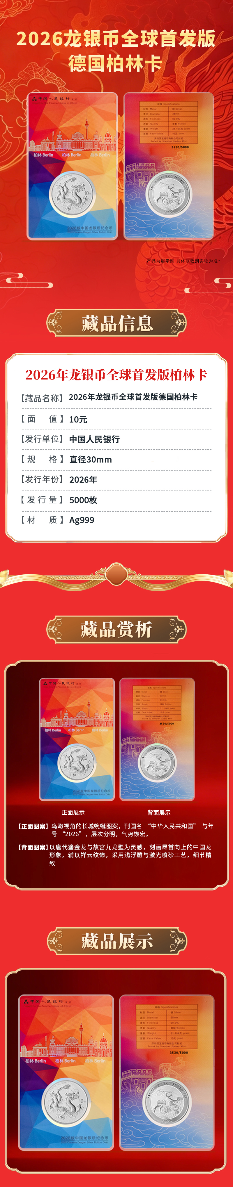 2026年中国龙银币全球首发版柏林卡Ag999 纯银31.104g