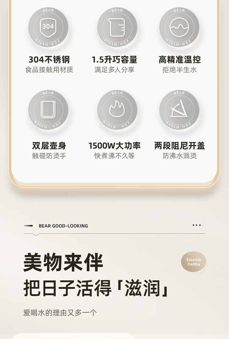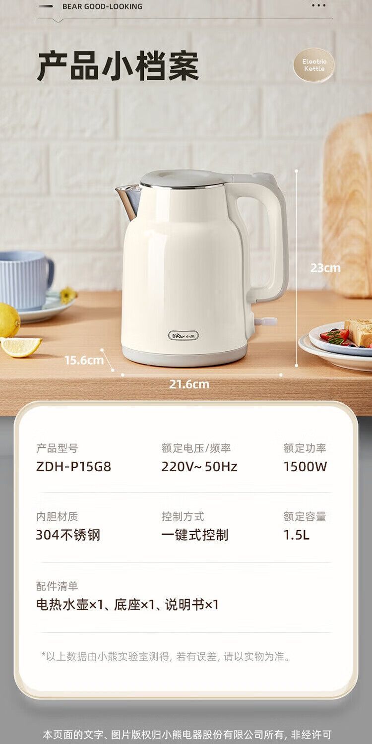 小熊 精准控温 家用烧水壶 1.5L
